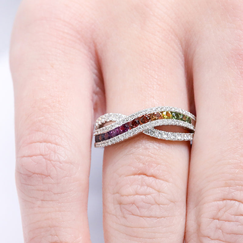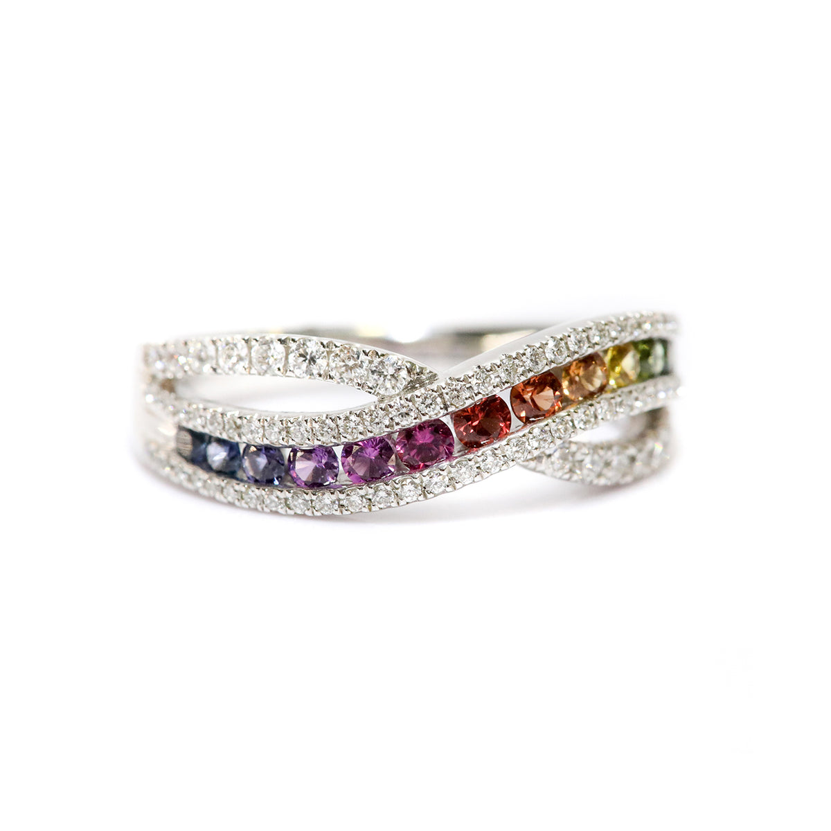 18ct White Gold Sapphire & Diamond Triple Floral Band