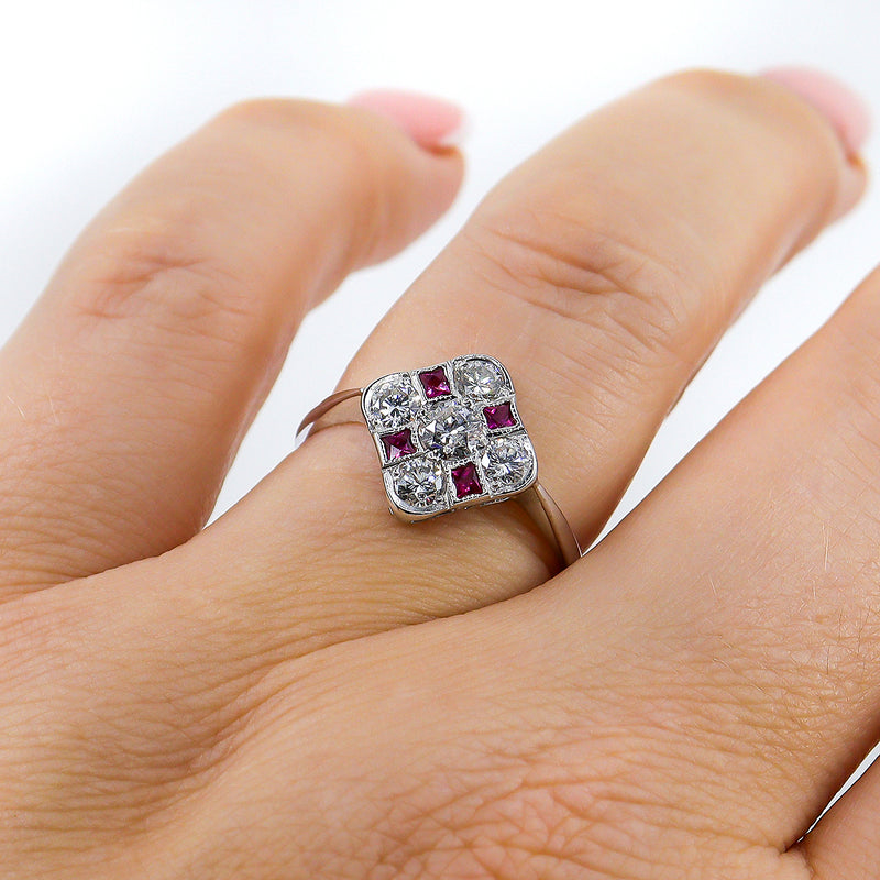18ct White Gold Ruby & Diamond Floral Split Shoulder Ring