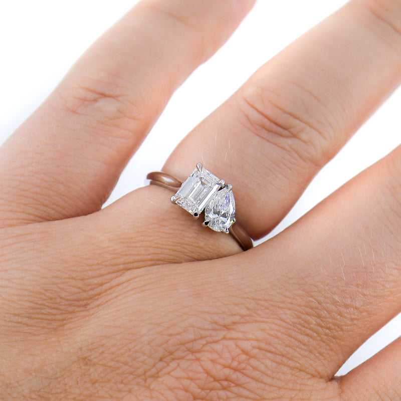 Platinum 3.69ct TDW Lab Grown Diamond Emerald Cut & Trapezoid Diamond Fancy Triology