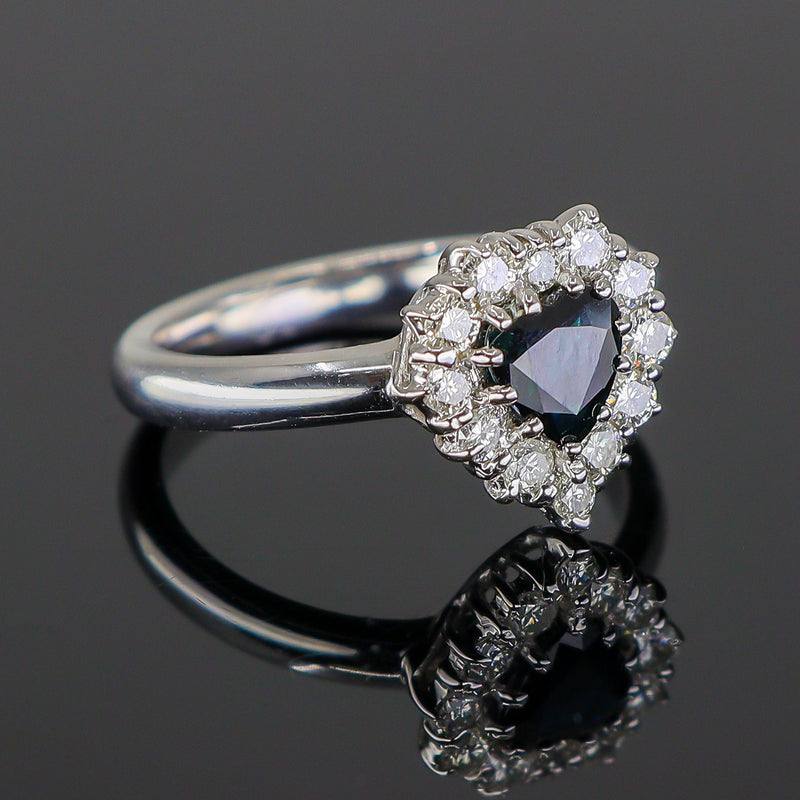 Pre-Owned 18ct White Gold Heart Sapphire & Diamond Cluster Ring