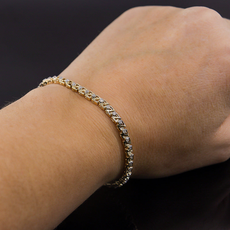 Pre-Owned 9ct Yellow Gold Fancy Z Link Diamond Line Bracelet With Box Clasp + Safety Catch