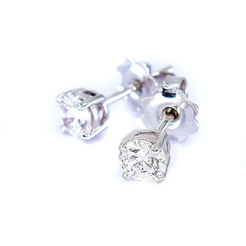 18ct White Gold Round 0.40ct Brilliant Cut Diamond Four Claw Stud Earrings