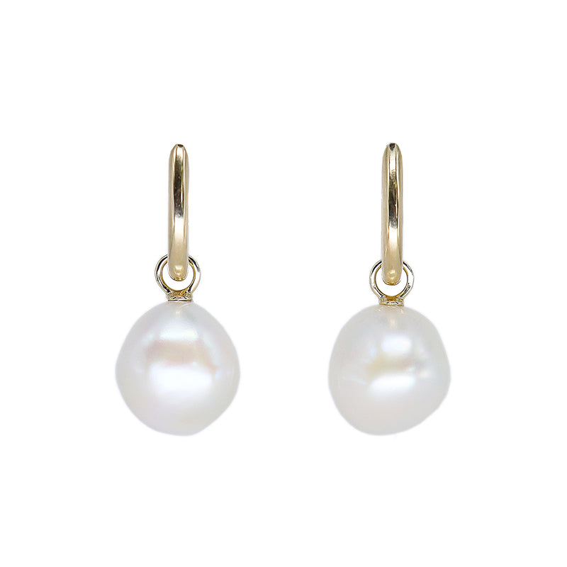 9ct Yellow Gold Freshwater White Baroque 11-13mm Pearl Huggie Hoop Earring - Removeable