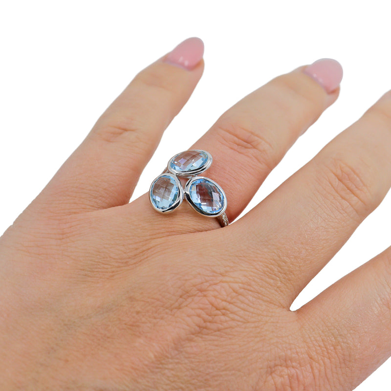 9ct White Gold Sky Blue Topaz & Diamond Fancy Ring
