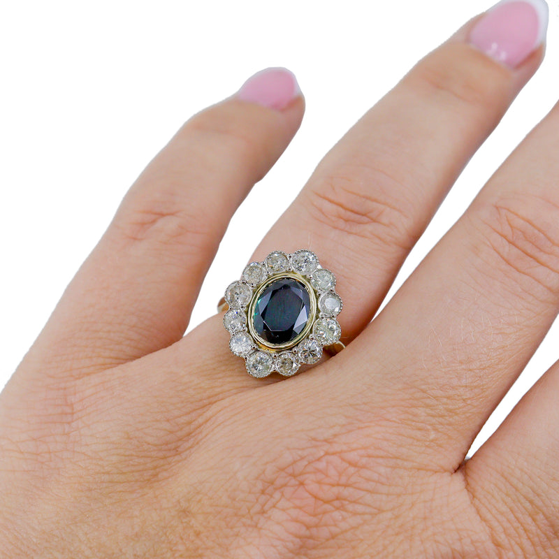 Pre-Owned 18ct Gold Teal Sapphire & Diamond Cluster Ring