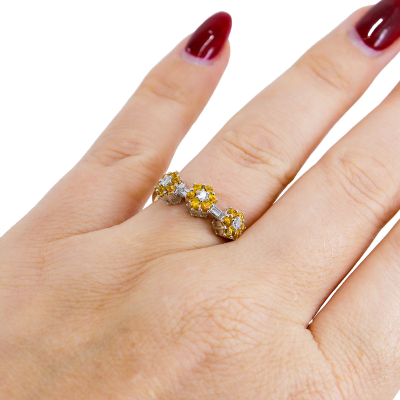 18ct Gold Yellow Sapphire & Diamond Triple Floral Band