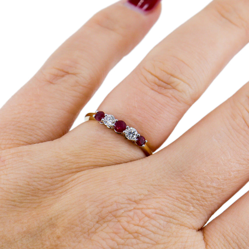 18ct Gold Ruby & Diamond Five Stone Eternity Ring