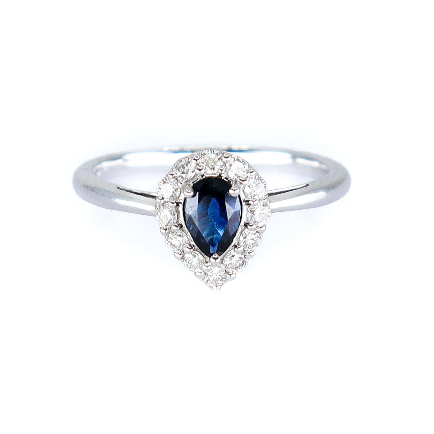 18ct White Gold Pear Shaped Sapphire & Diamond Cluster Ring