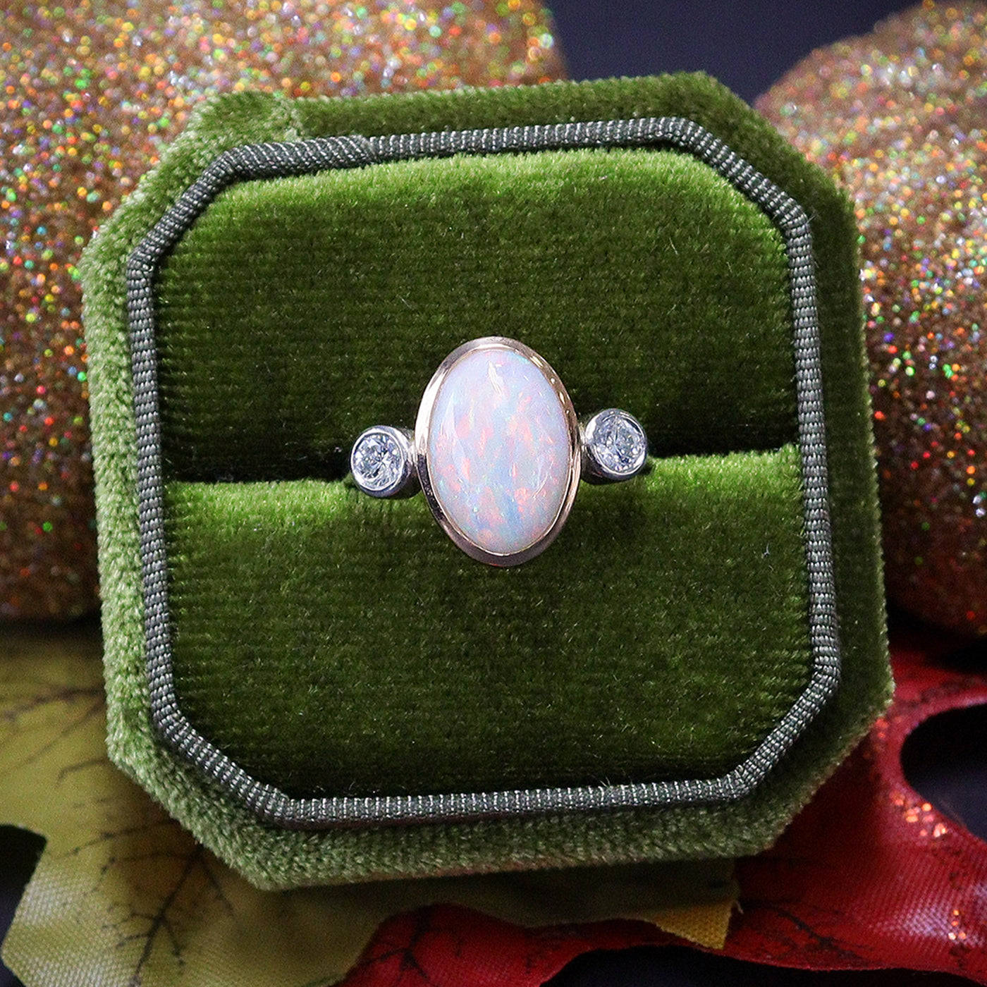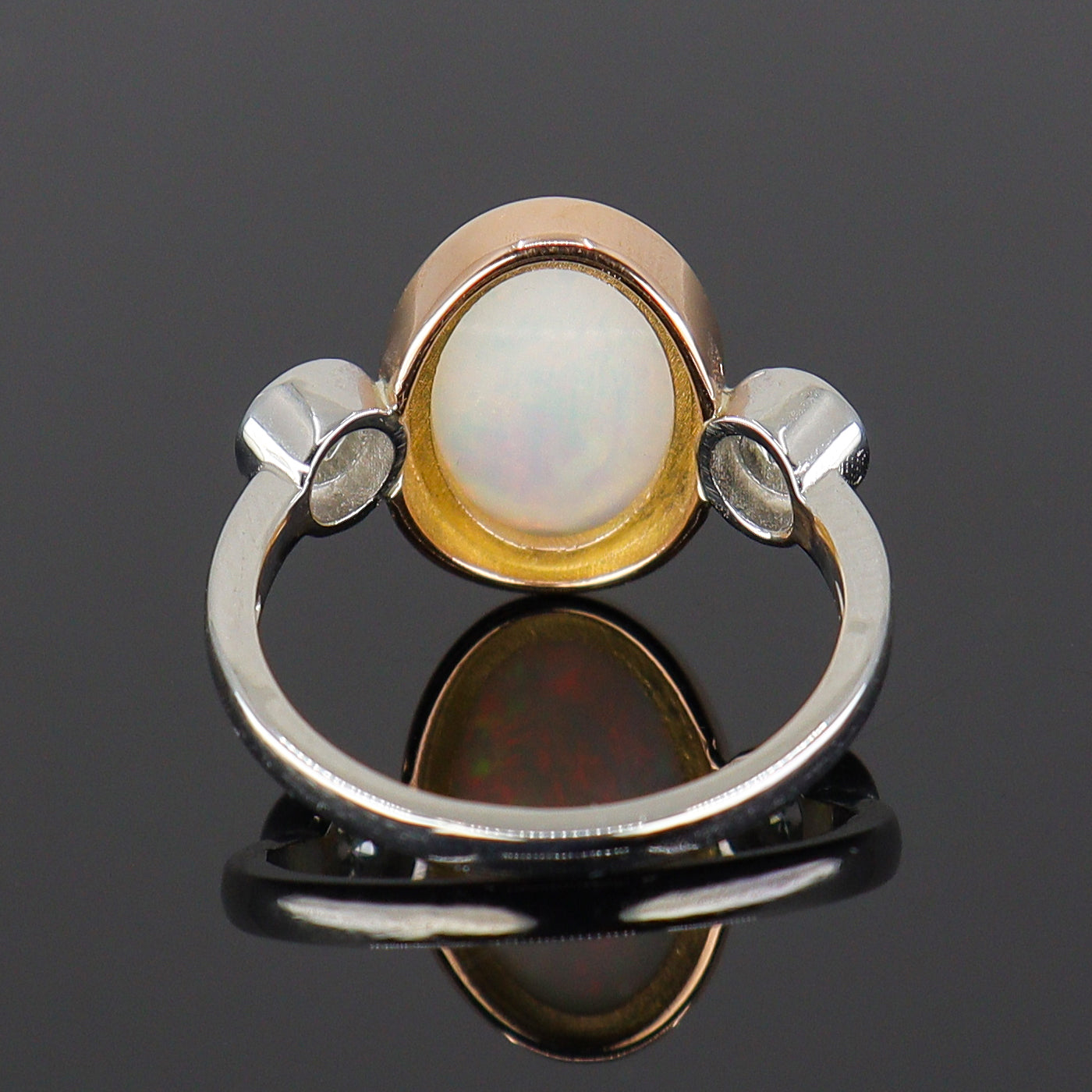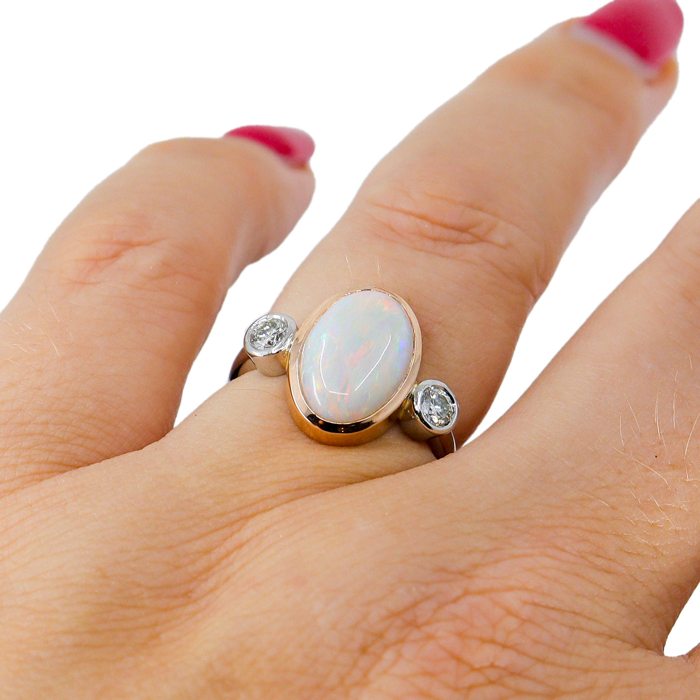 Pre-Owned Platinum & 18ct Rose Gold Oval Opal & Round Brilliant Cut Diamond Three Stone Ring