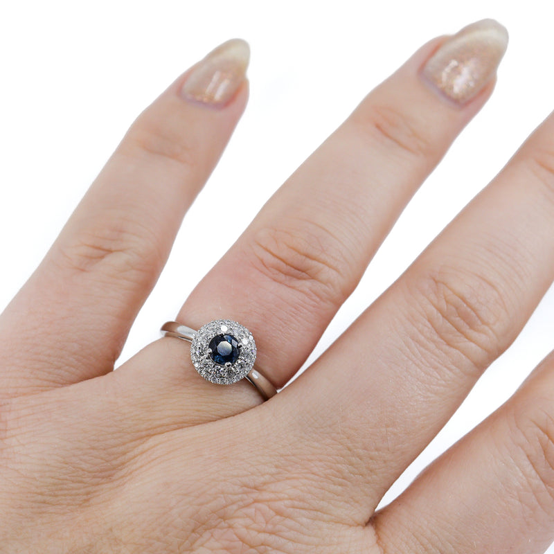 18ct White Gold Round Sapphire & Diamond Double Row Cluster Ring