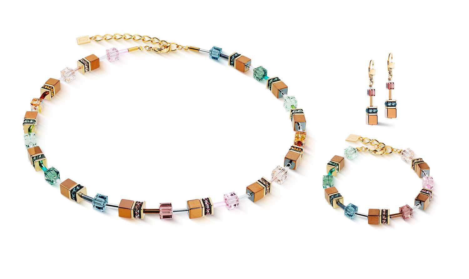 With their soft play of colours and bronze-coloured metallic cubes, these earrings bring feminine lightness into play. Shades of pink and blue in sparkling crystals meet the clear GeoCUBE® design - for a look that is somewhere between elegance and modern art. Perfect for anyone looking for jewellery with expression.