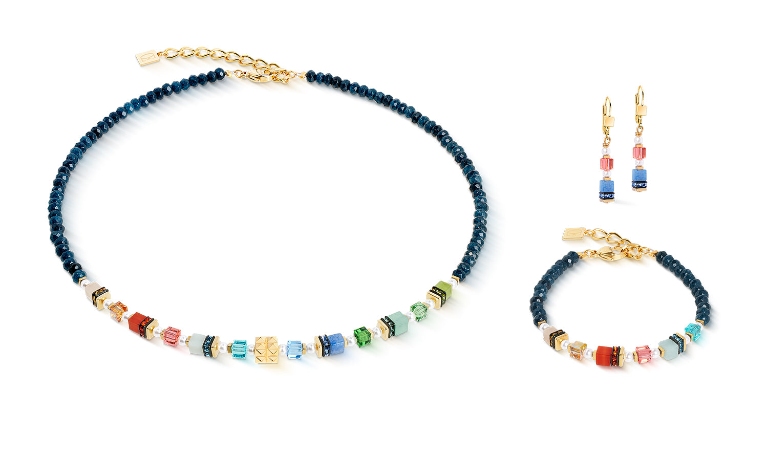 A statement of colour and sparkle: the Sparkling Princess necklace in multicolour combines vibrant gemstones such as amazonite, carnelian and green aventurine with sparkling crystals and gold-coloured stainless steel. The characteristic spike gives the design a modern touch. Each component is precisely handcrafted in Germany - for an expressive piece of jewellery that can be perfectly combined with the matching bracelet or earrings.