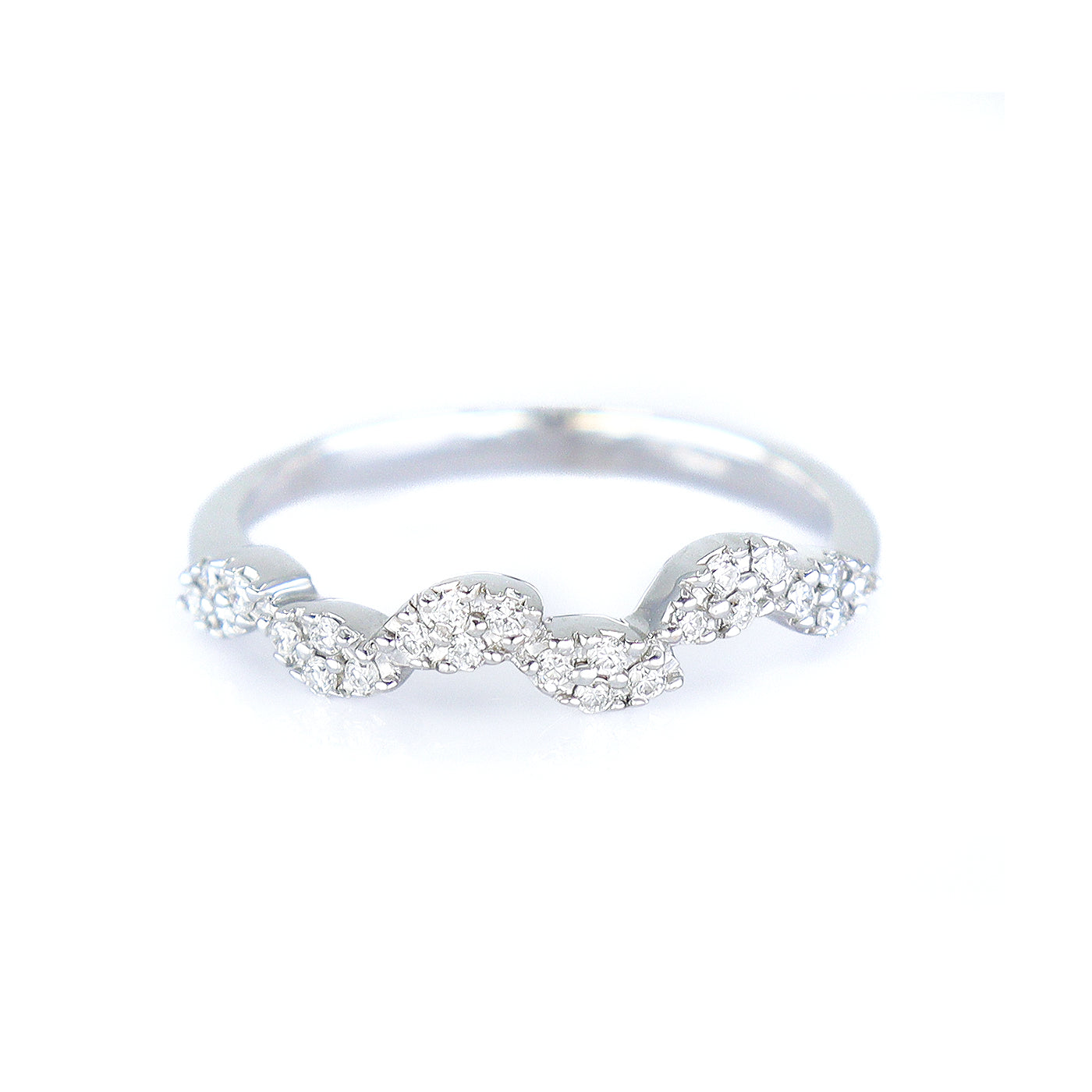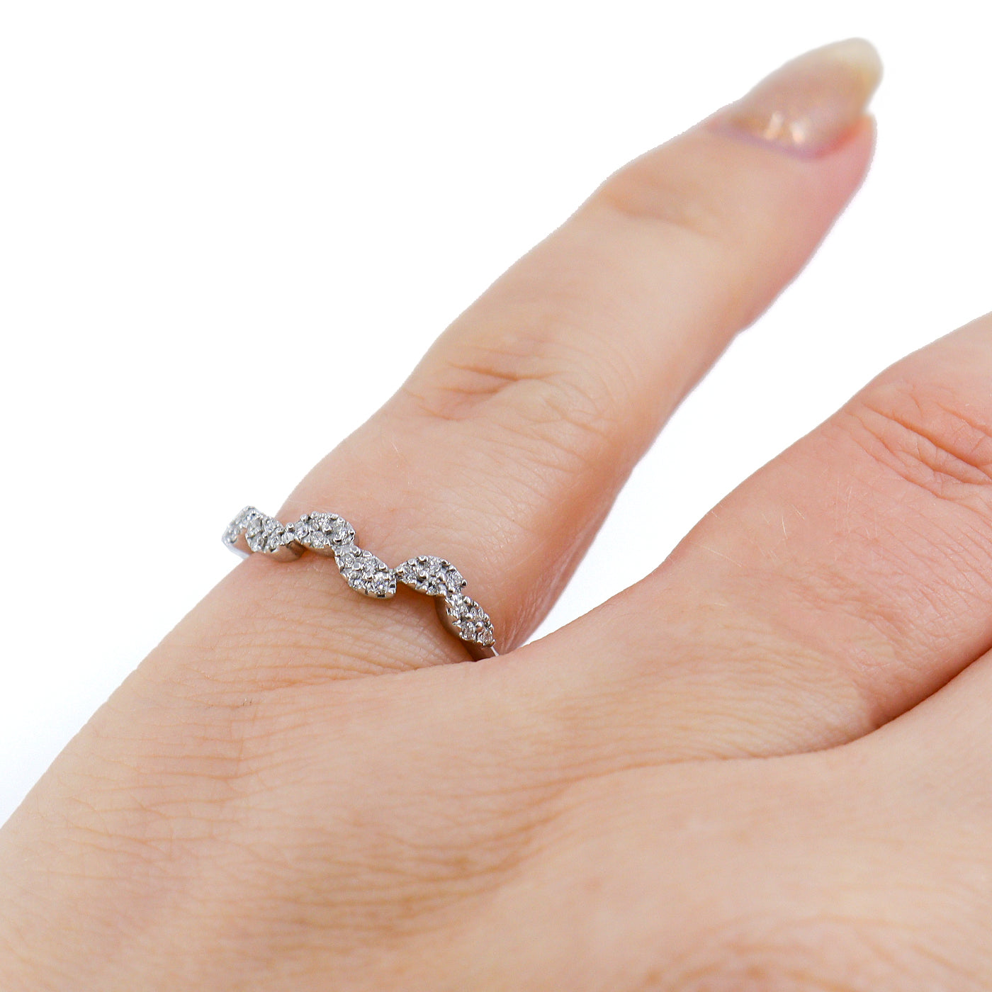 Elegant and timeless, this 18ct White Gold half eternity ring features 0.25ct of pave-set round brilliant cut Diamonds arranged in a delicate marquise shaped setting. The pave Diamonds maximise sparkle, making this ring a refined choice for weddings, anniversaries, or stacking with other rings.