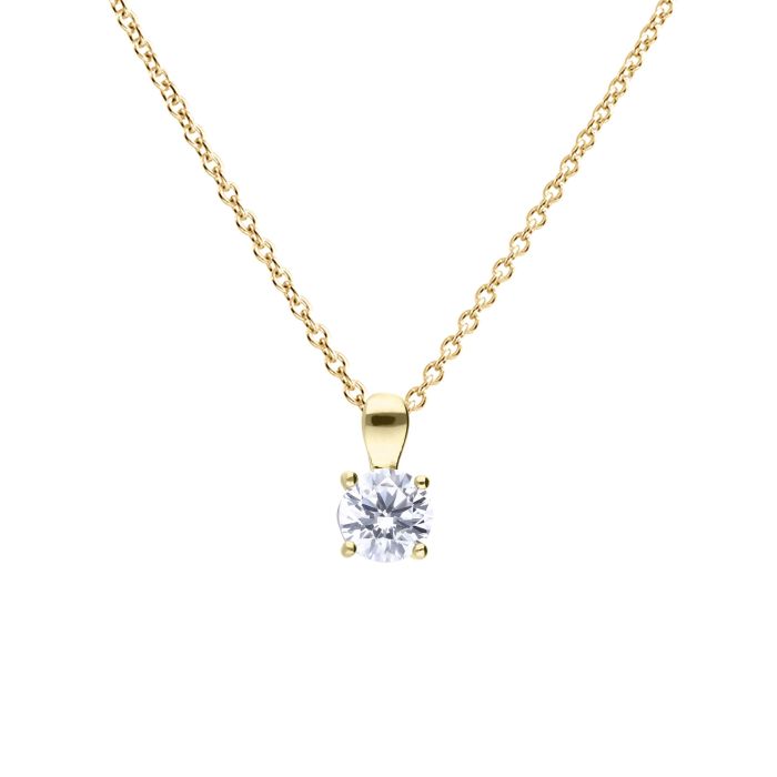 This stunning piece of jewellery, crafted in Sterling Silver with a 24ct Plating, encapsulates the essence of elegance and brilliance. At the heart of this pendant sits a sparkling 1ct Cubic Zirconia stone which has the same number of facets as a natural diamond, carefully cradled by a four claw setting. The design of this pendant radiates a timeless charm, making it a wonderful everyday accessory or even a stunning piece for a special occasion!  This chain can be worn at 16", 17" & 18" to suit any neckline.