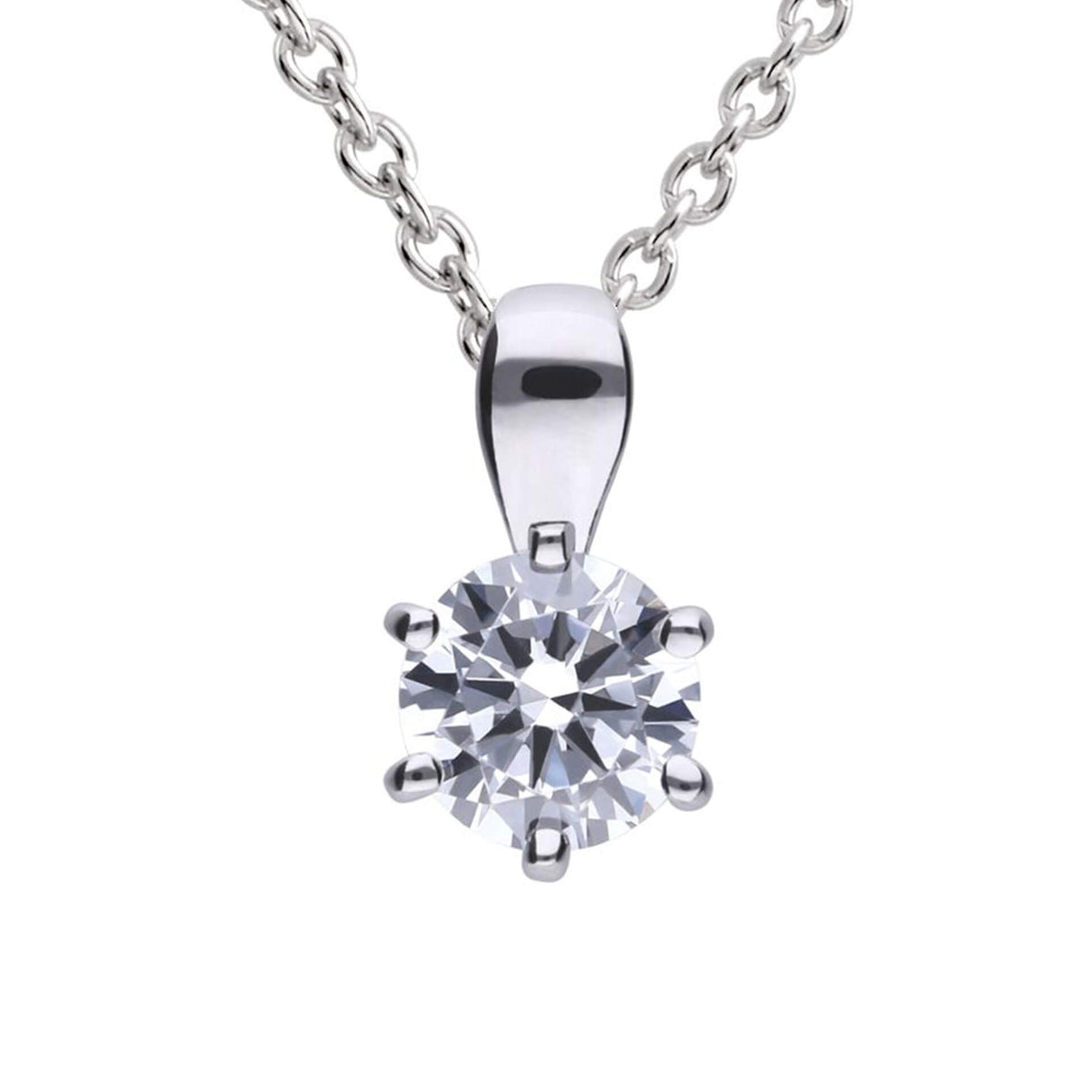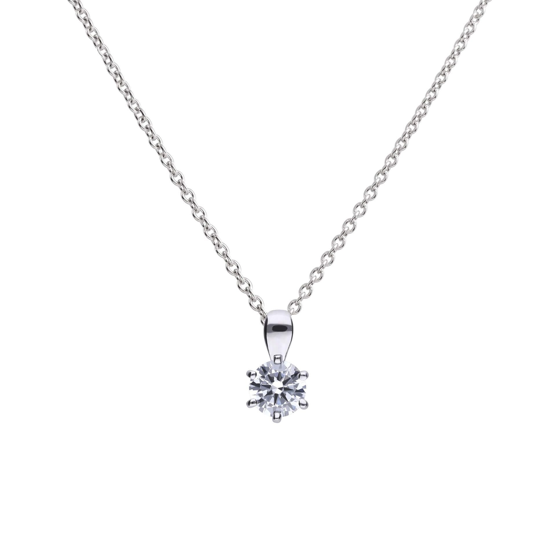 This stunning piece of jewellery, crafted in Sterling Silver, encapsulates the essence of elegance and brilliance. At the heart of this pendant sits a sparkling 0.75ct Cubic Zirconia stone which has the same number of facets as a natural diamond, carefully cradled by a six claw setting. The design of this pendant radiates a timeless charm, making it a wonderful everyday accessory or even a stunning piece for a special occasion! This chain can be worn at 16", 17" & 18" to suit any neckline.