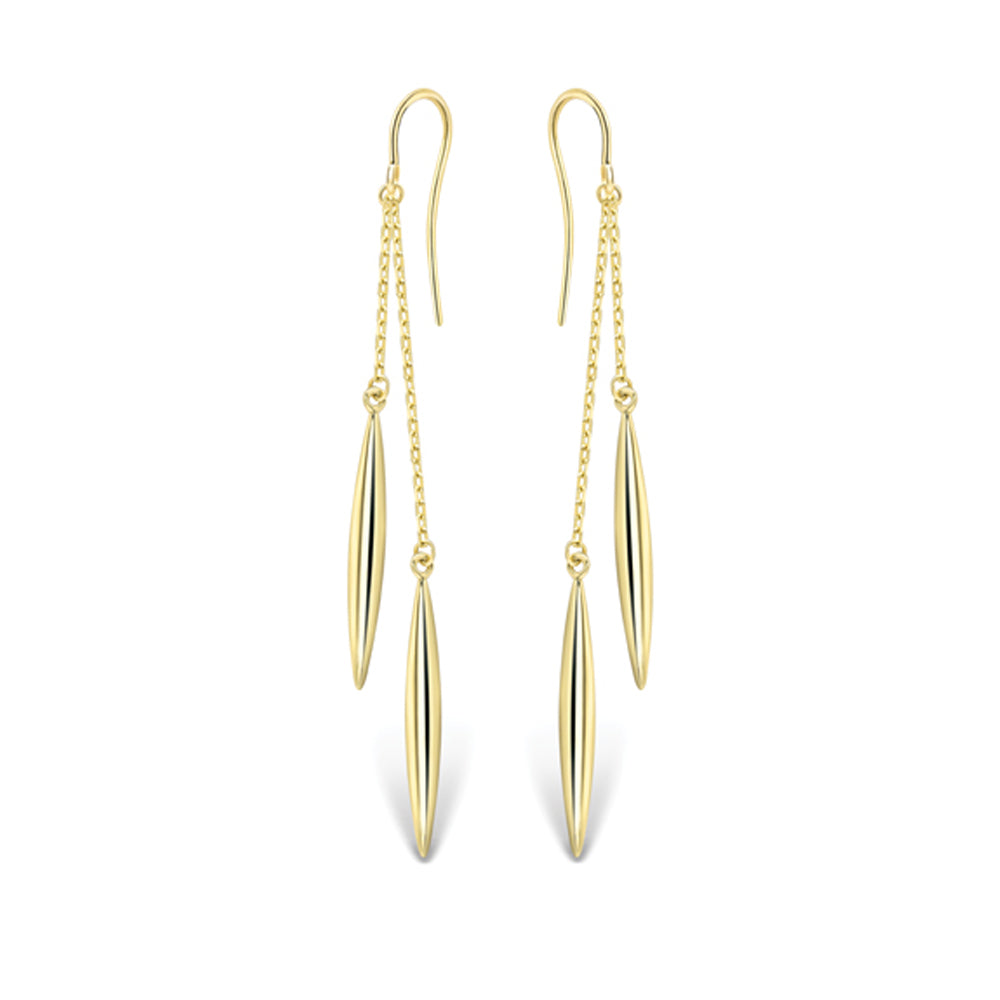 9ct Yellow Gold Double Torpedo Chain Drop Earrings