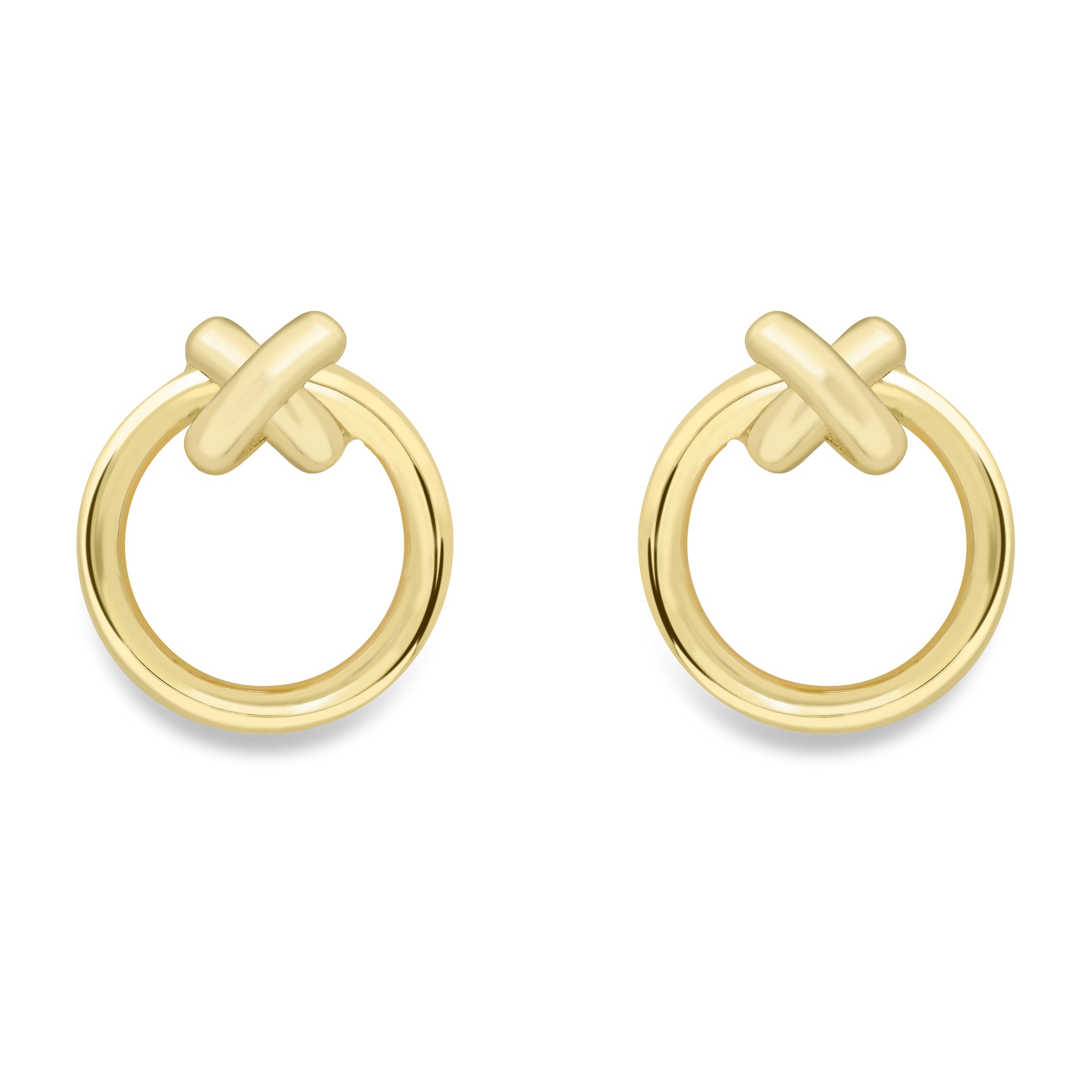 Add a touch of timeless sophistication to your look with these beautifully crafted gold stud earrings. Featuring a polished open circle design accented by a subtle "X" detail at the top, these earrings blend modern minimalism with classic charm. Perfect for everyday wear or special occasions, their lightweight construction ensures comfort while making a chic statement.