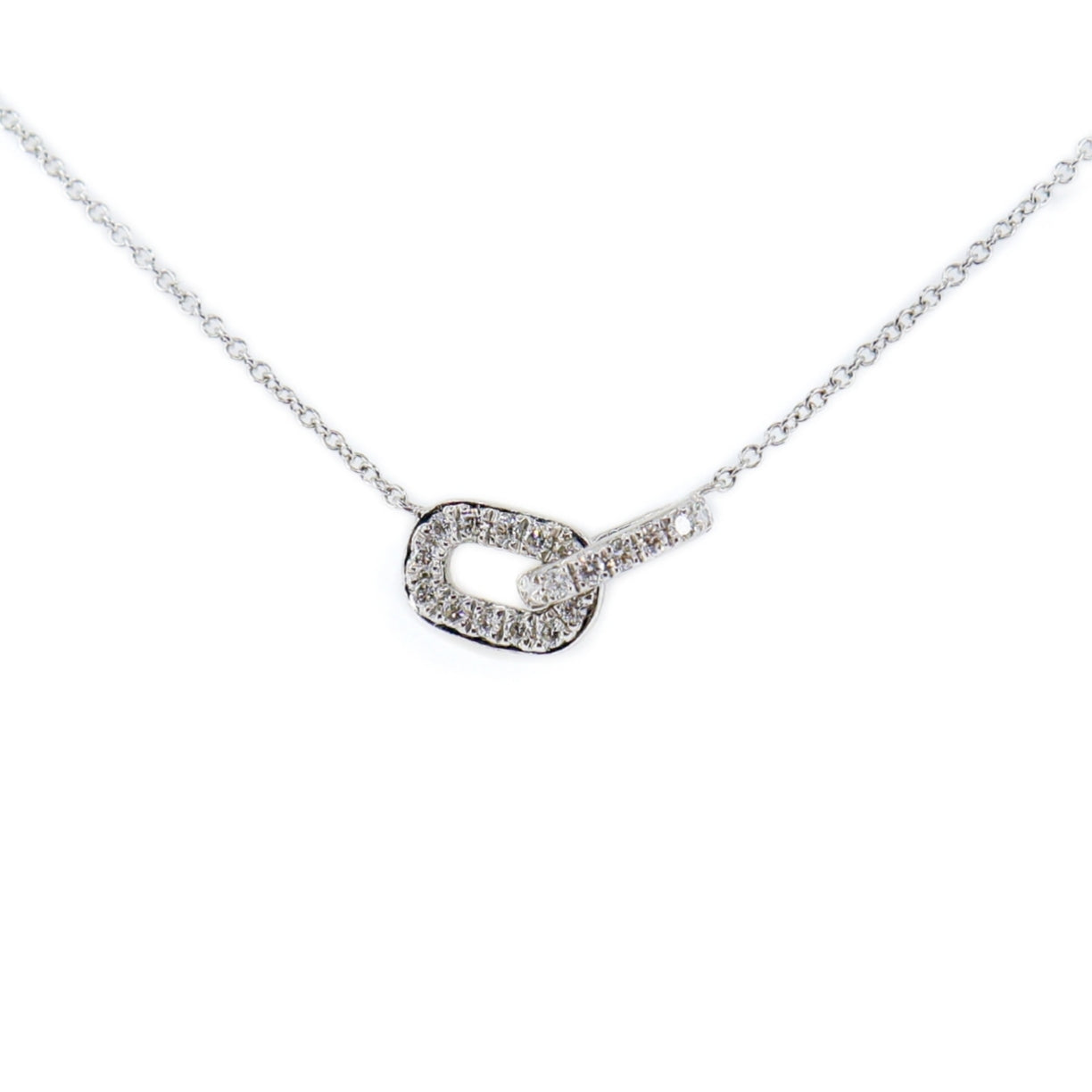 Make a bold yet refined statement with this stunning diamond link pendant necklace. Featuring two interlocking links one oval-shaped and one rectangular each encrusted with shimmering round-cut diamonds, this piece embodies unity and modern elegance. Expertly crafted in polished 9ct white gold, the pendant is suspended from a delicate yet durable chain, perfect for both everyday sophistication and special occasions.
