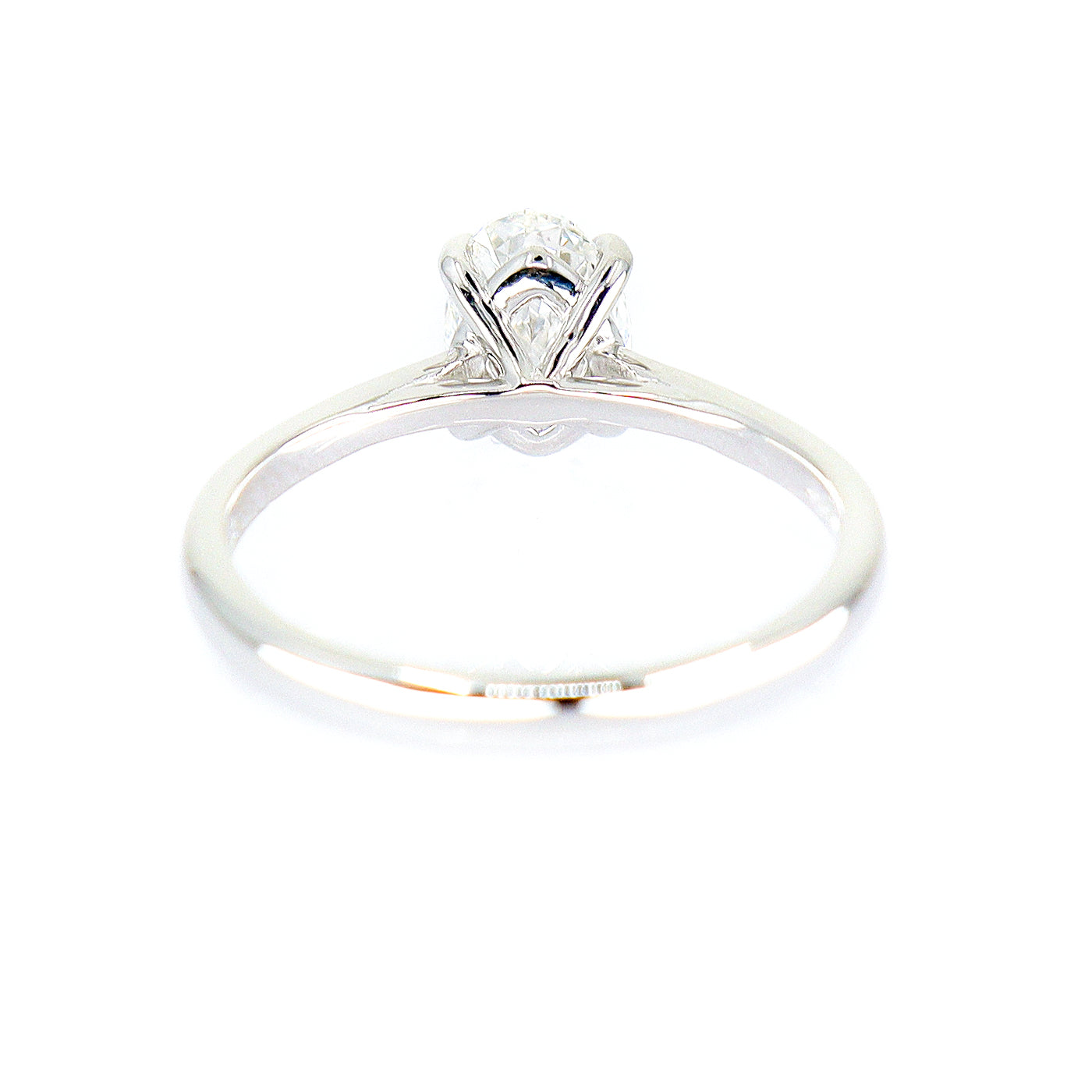 This elegant piece features a 1.03ct lab-grown Oval Diamond, set in a classic 9ct White Gold 4 Claw setting. The design is crafted to sit seamlessly alongside any plain or diamond-set wedding band.
