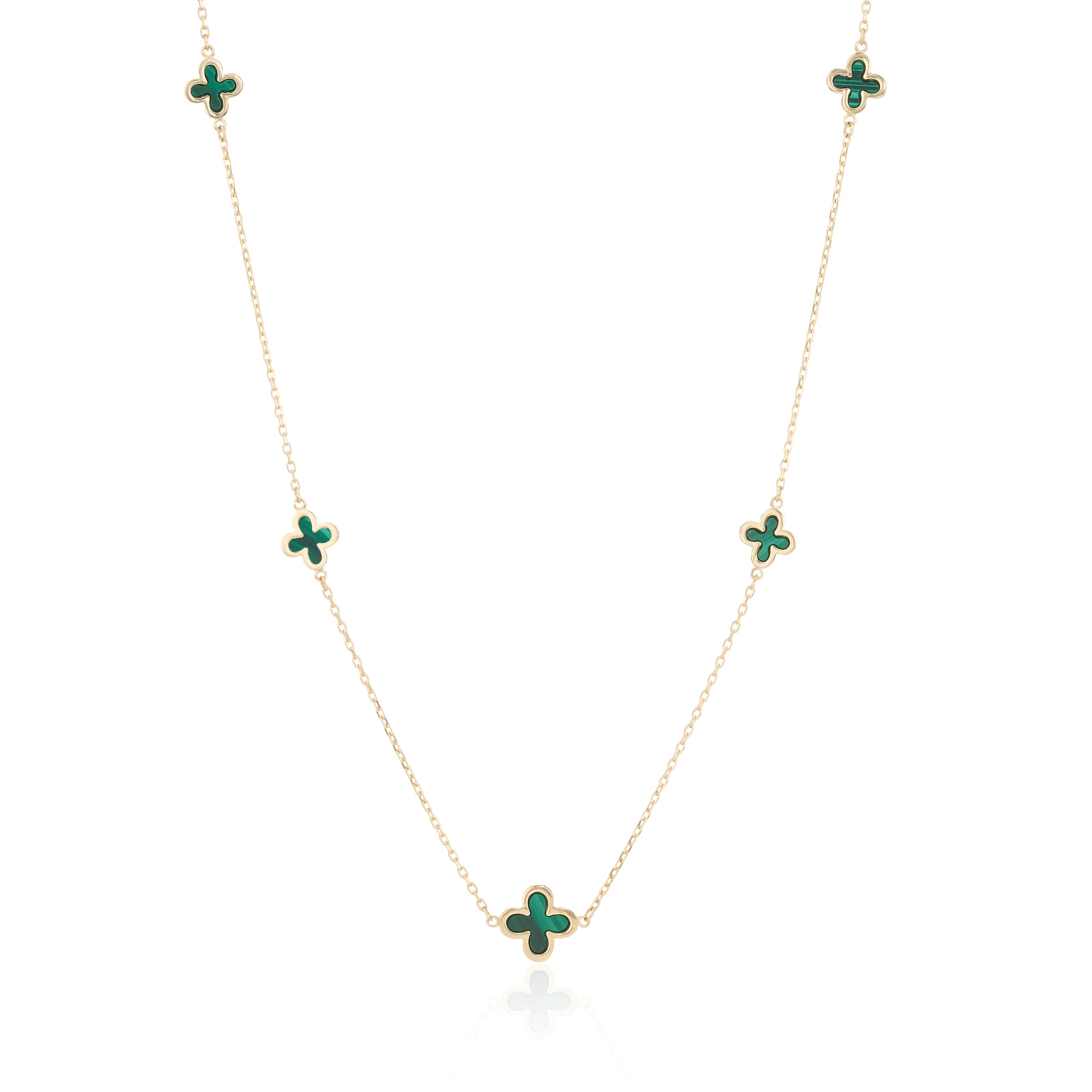 9ct Yellow Gold Malachite Flower Necklace