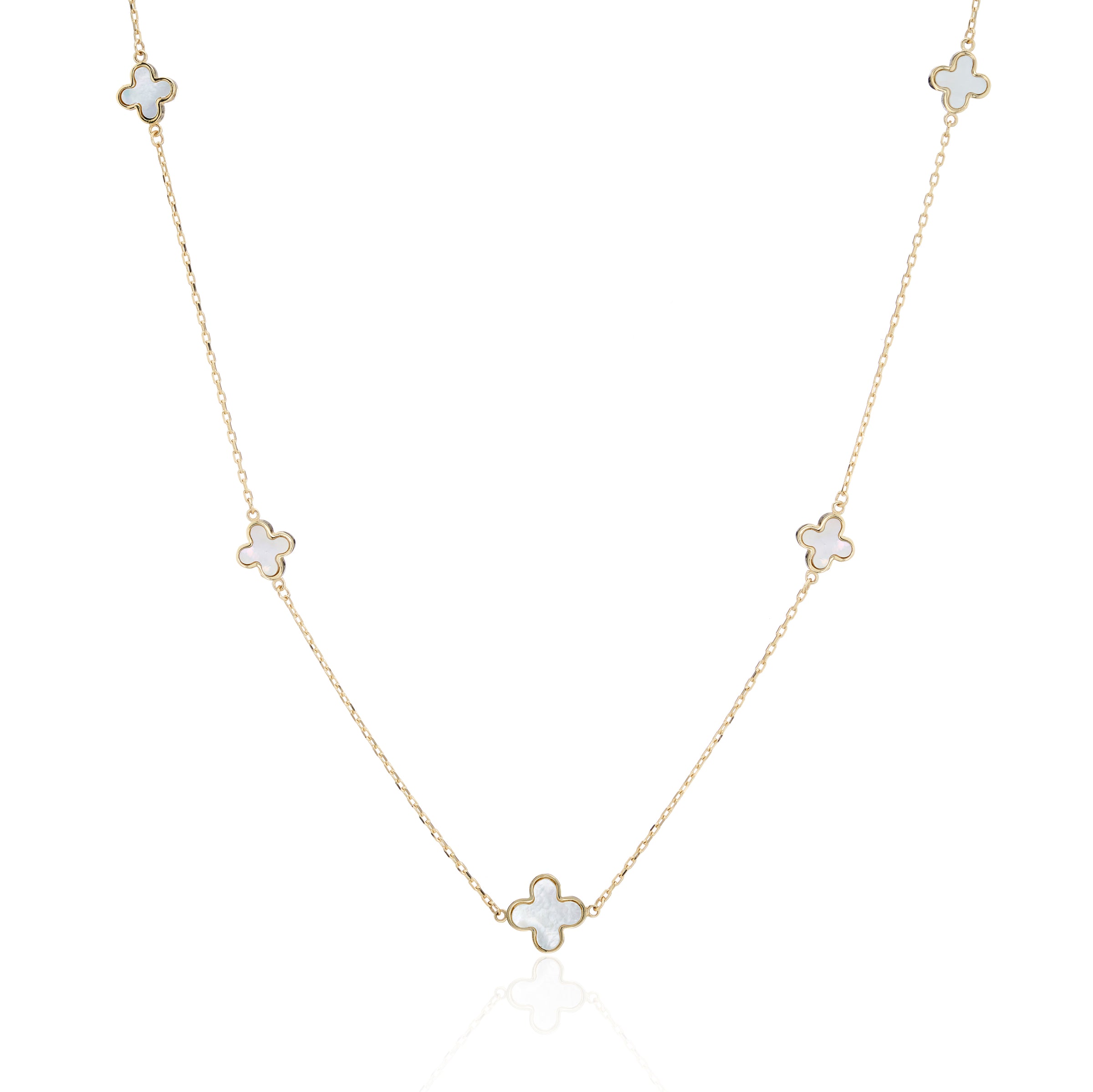 9ct Yellow Gold Mother of Pearl Flower Necklace