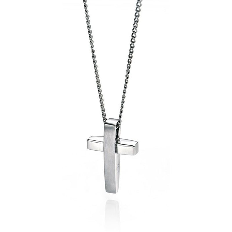 Crafted in stainless steel, this cross pendant features two different finishes of polished and satin. Make sure to pair with other stainless steel items to complete your look!