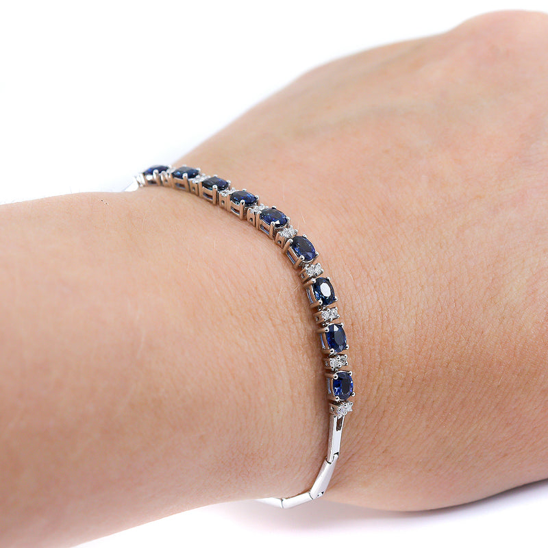 18ct White Gold Oval Sapphire and Diamond Cluster Ring