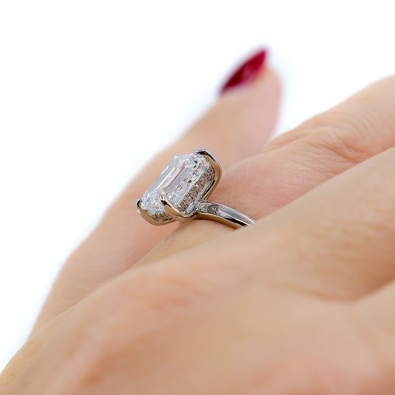 Platinum Lab Grown 3.17ct TDW Emerald Cut Diamond Claw Set Solitaire Ring With Diamond Accented