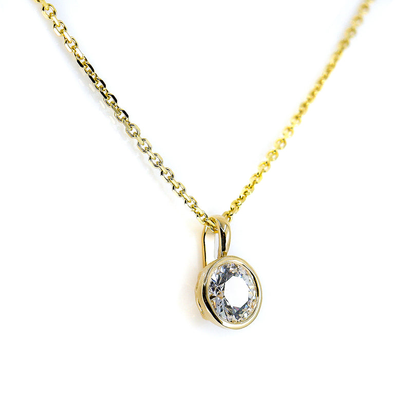 9ct Yellow Gold 1.00ct Lab Grown IGI Certificated Round Brilliant Cut Solitaire Rub Set Pendant