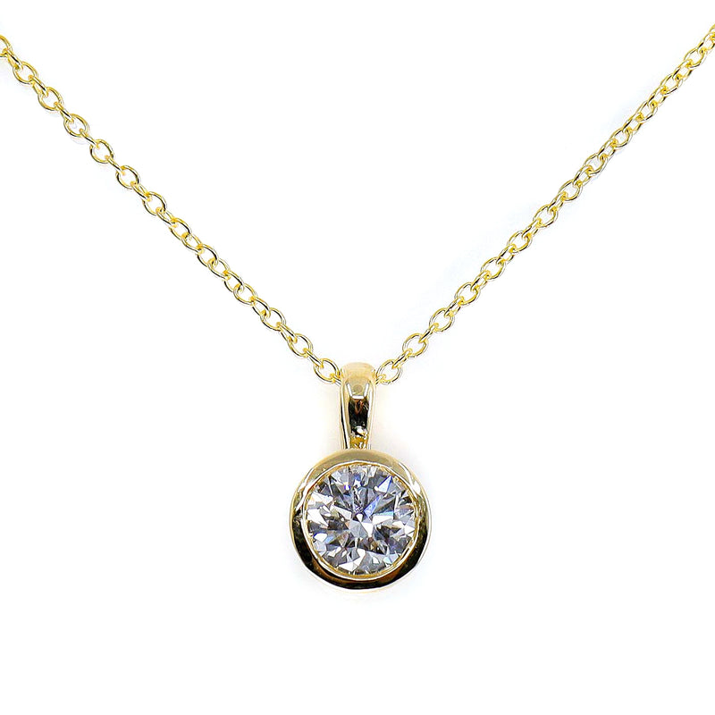 9ct Yellow Gold 0.50ct Lab Grown IGI Certificated Round Brilliant Cut Solitaire Rub Set Pendant