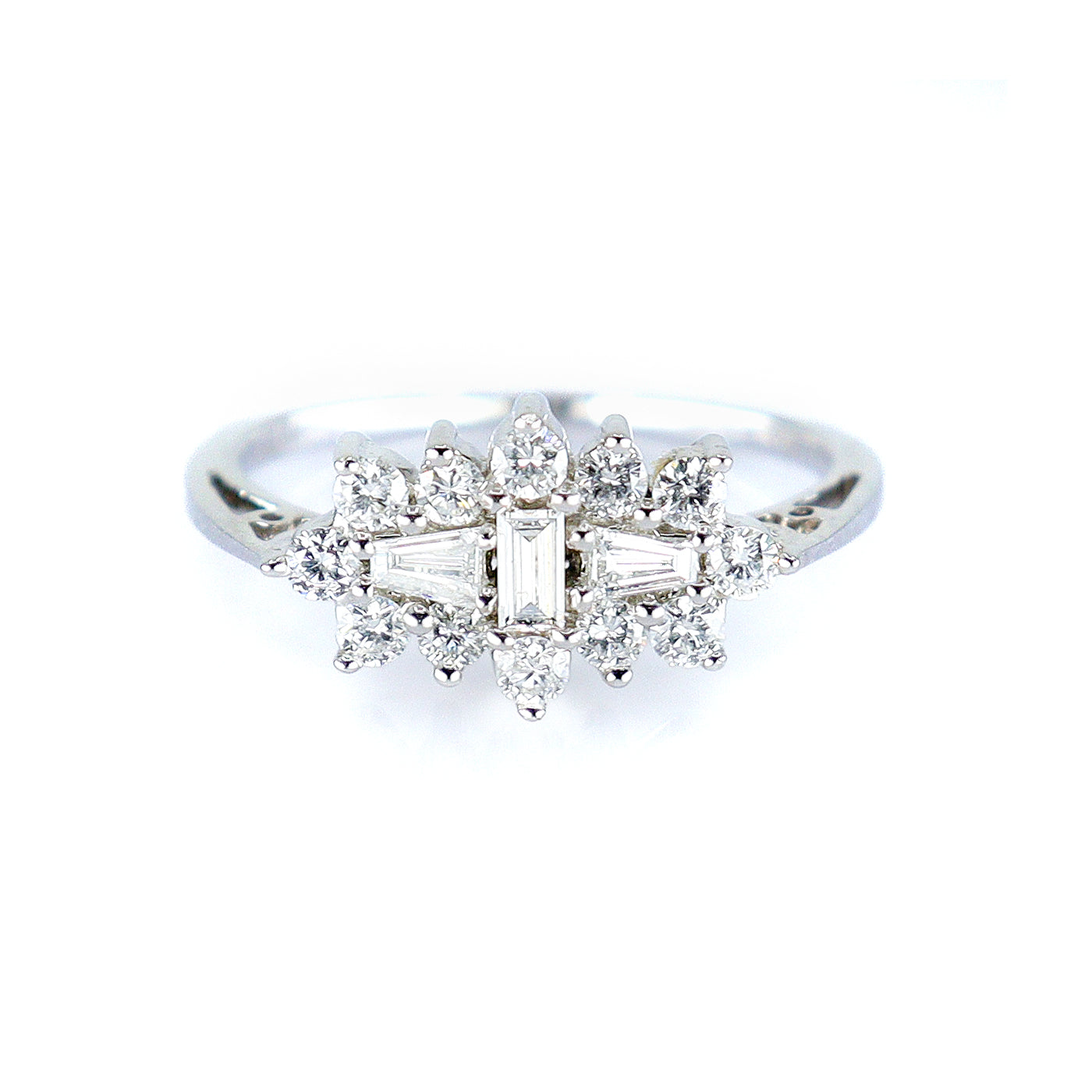 18ct White Gold 0.60ct Baguette, Tapered Baguette & Round Brilliant Cut Diamond Boat Cluster Ring
