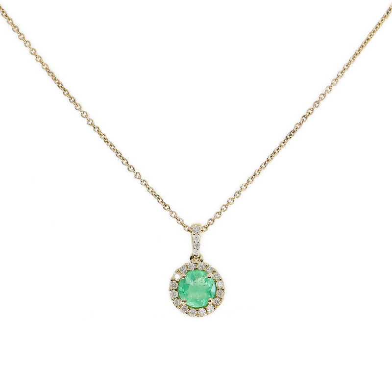 Pre-Owned 9ct Yellow Gold Emerald & Diamond Halo Pendant & Chain