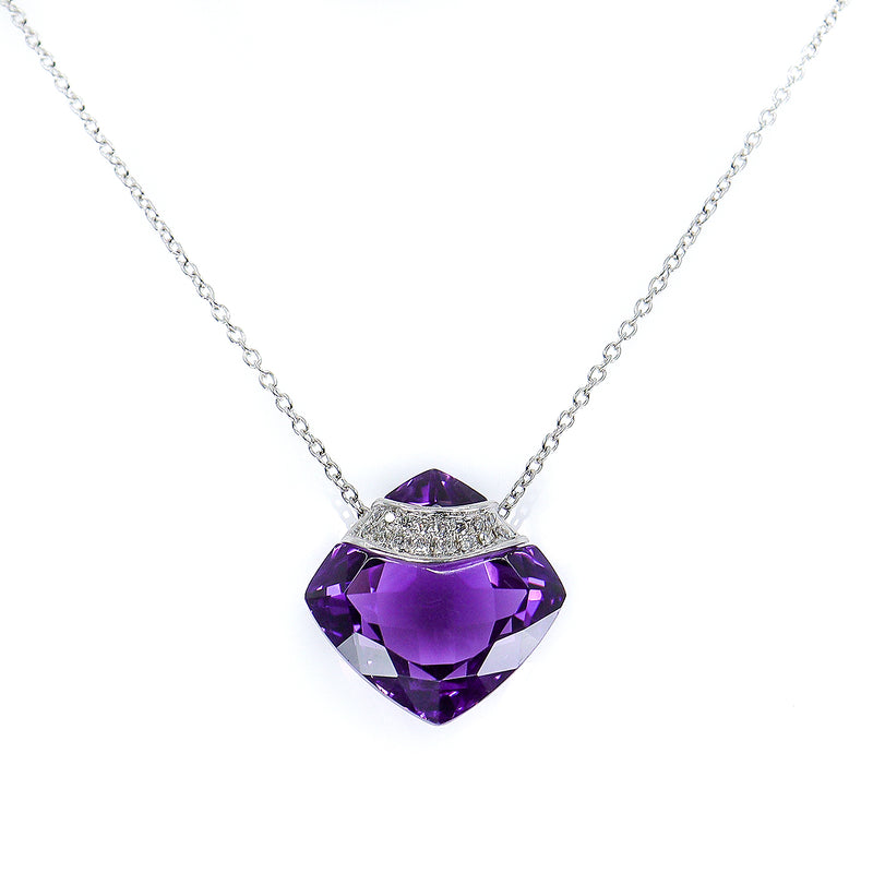 Pre-Owned 18ct White Gold Fancy Cushion Cut Amethyst & Diamond Fancy Floating Pendant & Chain