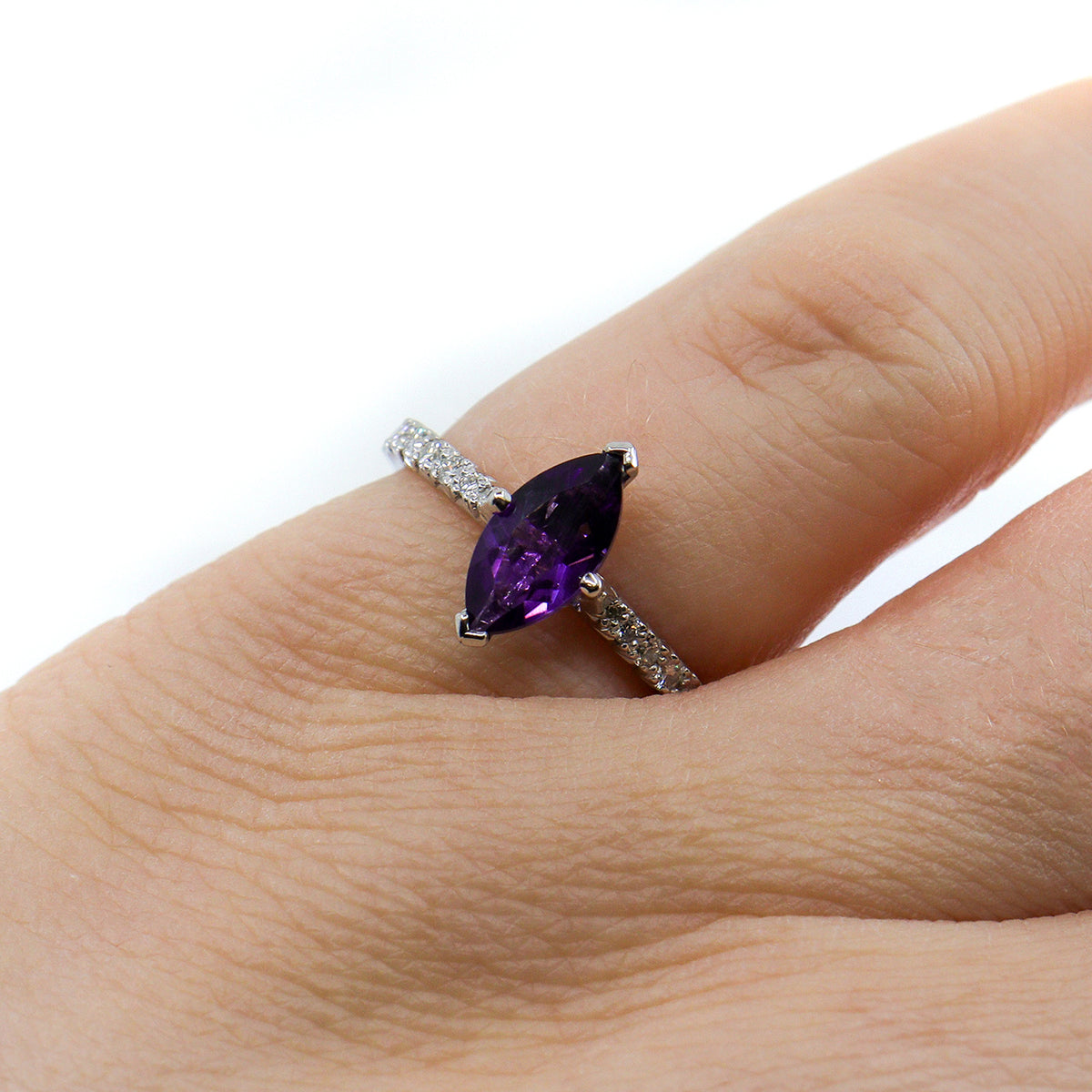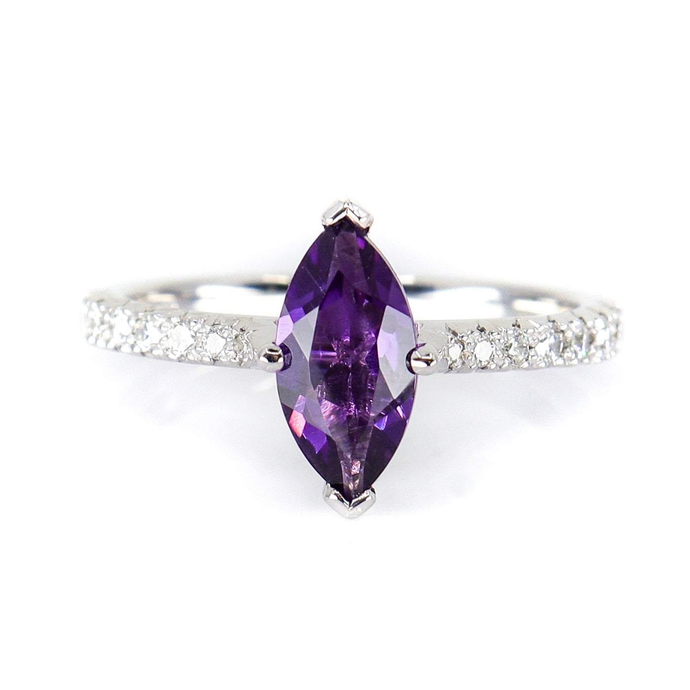 Bespoke 9ct White Gold Marquise Amethyst and Diamond Solitaire Ring