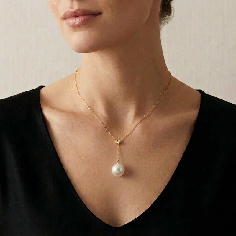 9ct Yellow Gold Freshwater White 12-9mm Teardrop Sliding Pearl Pendant & Chain 18"
