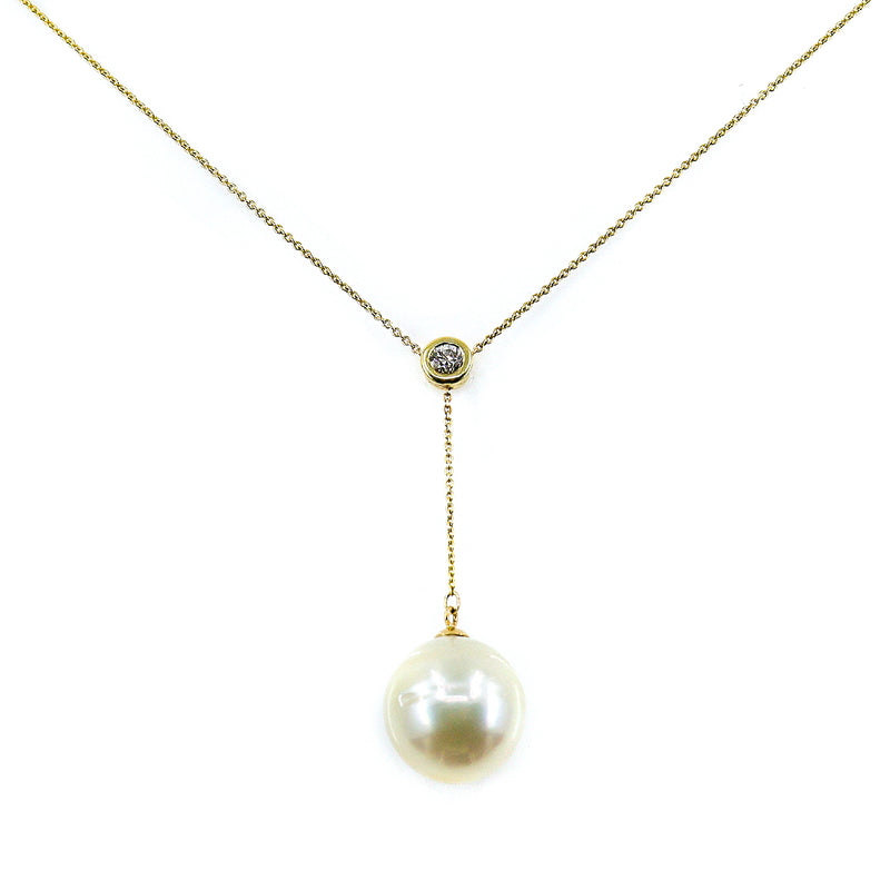 Pre-Owned 18ct Yellow Gold South Sea Pearl & Diamond Lariat Drop Necklace
