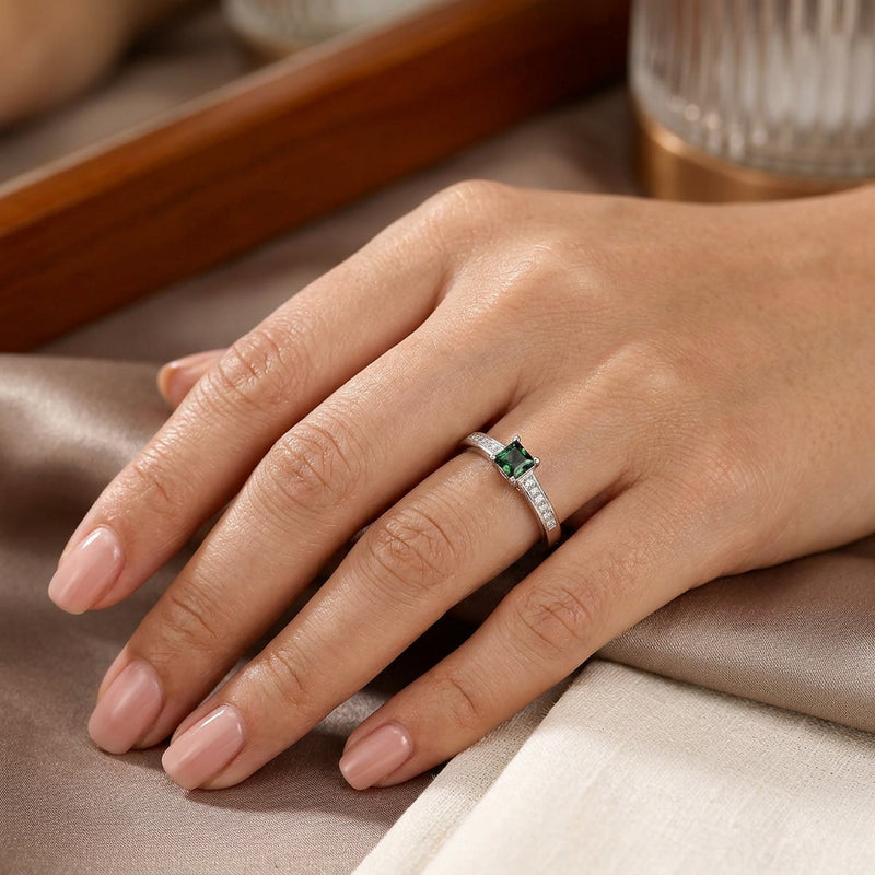 Pre-Owned 18ct White Gold Teal Sapphire & Diamond Ring