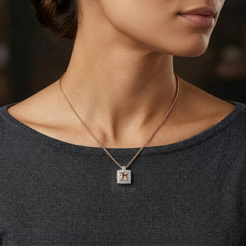 Pre-Owned Two Tone Pink Tourmaline & Diamond Pendant & Chain