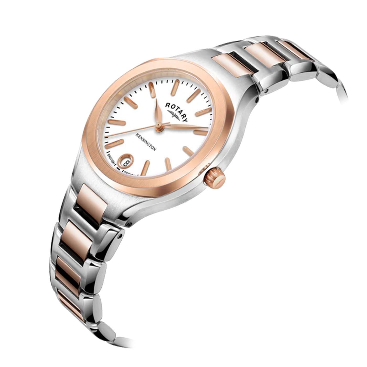 Rotary Ladies Kensington Stainless Steel Two Colour Rose Gold Contemporary Bracelet Watch