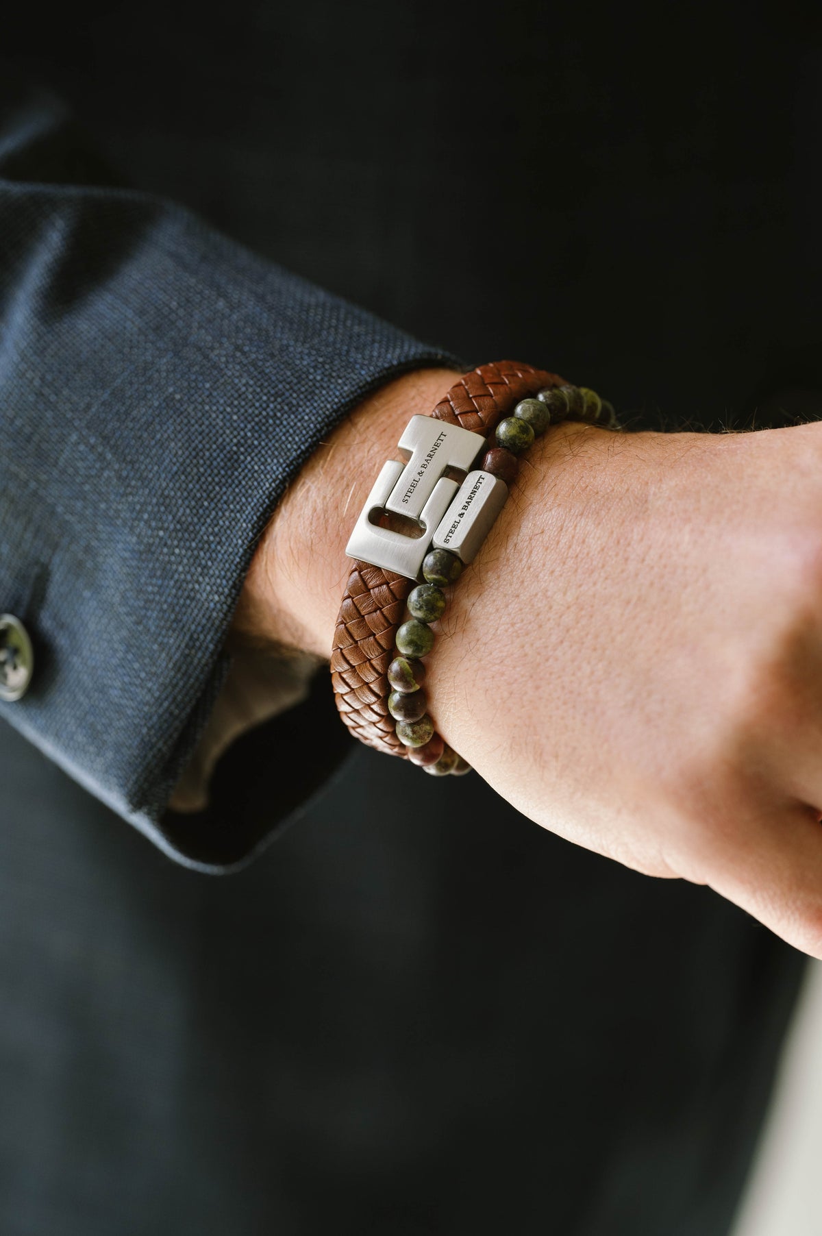 Steel & Barnett Harrison Woven Peanut Leather & Stainless Steel Bracelet - Medium (20-21cm)