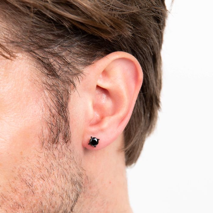 Fred Bennett Stainless Steel Black IP & Black Round Cubic Zirconia Four Claw Stud Earrings