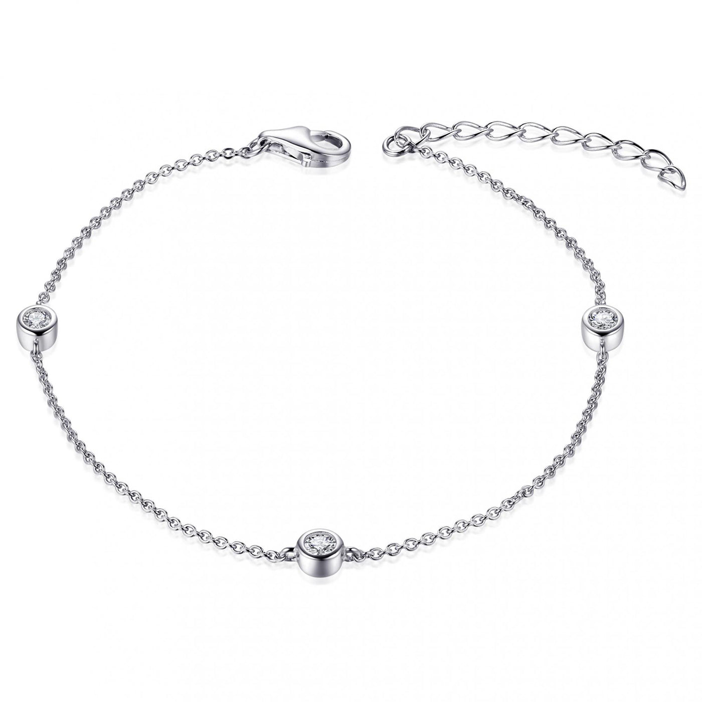 An elegant Sterling Silver and 18ct Yellow Gold Plated three rub-over Cubic Zirconia Station Bracelet. This bracelet can be worn between 6.5mm and 7.5mm making it suitable to wear on its own or layer with your favourite bracelets.