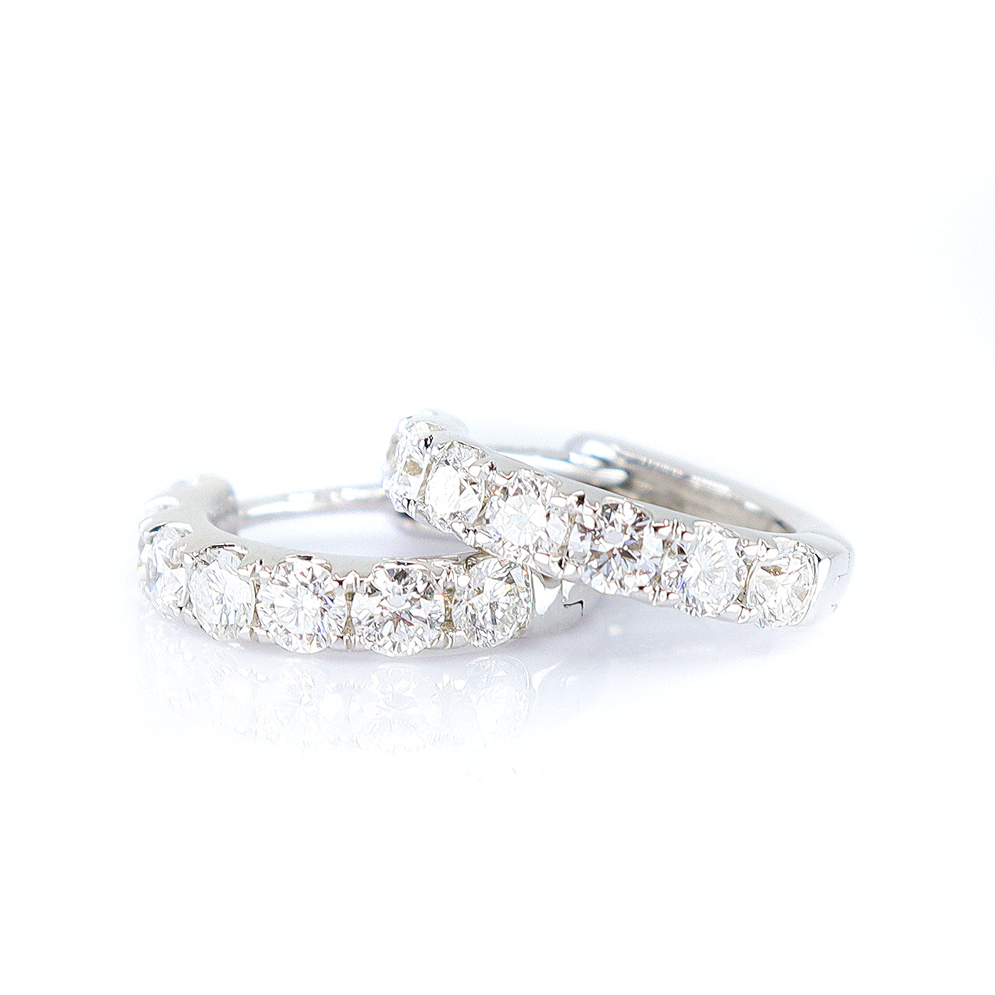 Crafted in polished 18ct white gold, each hoop features sparkling lab grown round brilliant cut diamonds totalling 1.00 carat.