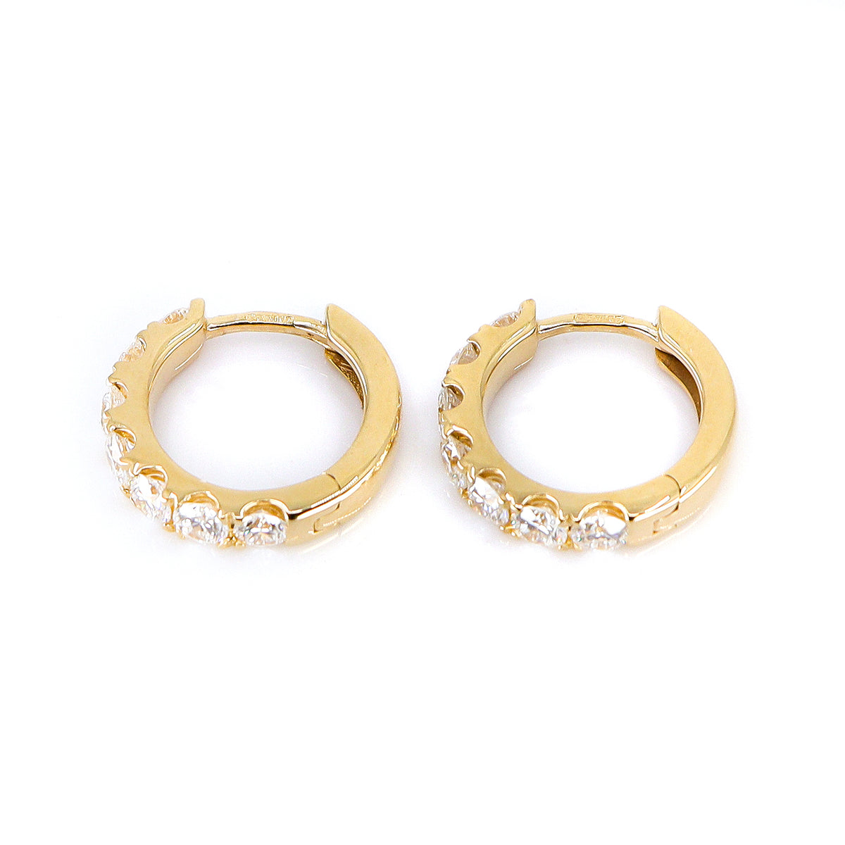 Crafted in polished 18ct yellow gold, each hoop features sparkling lab grown round brilliant cut diamonds totalling 1.00 carat.