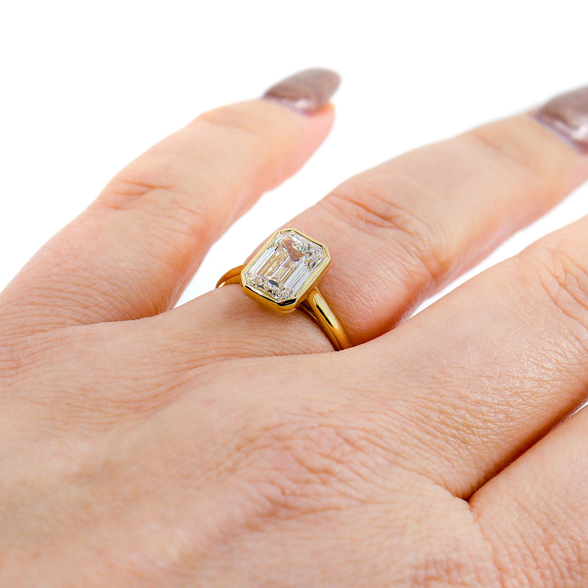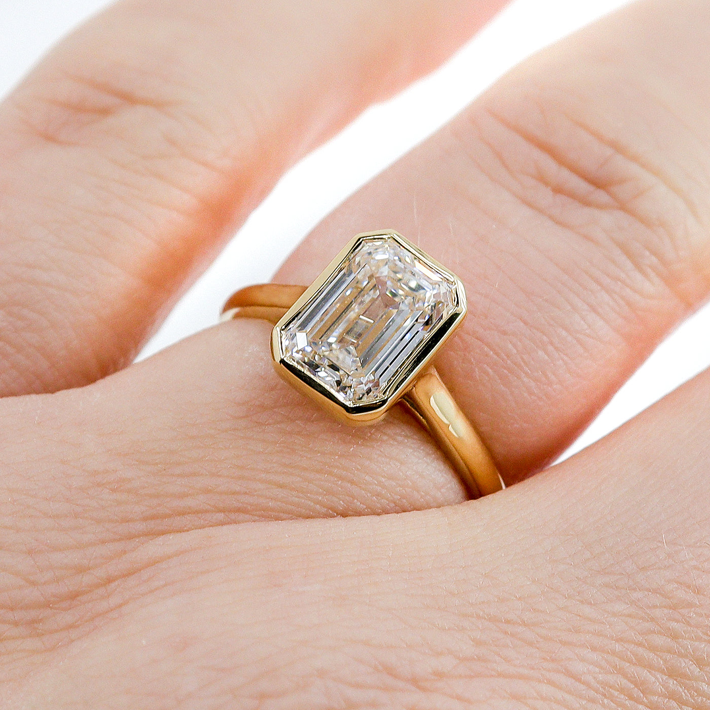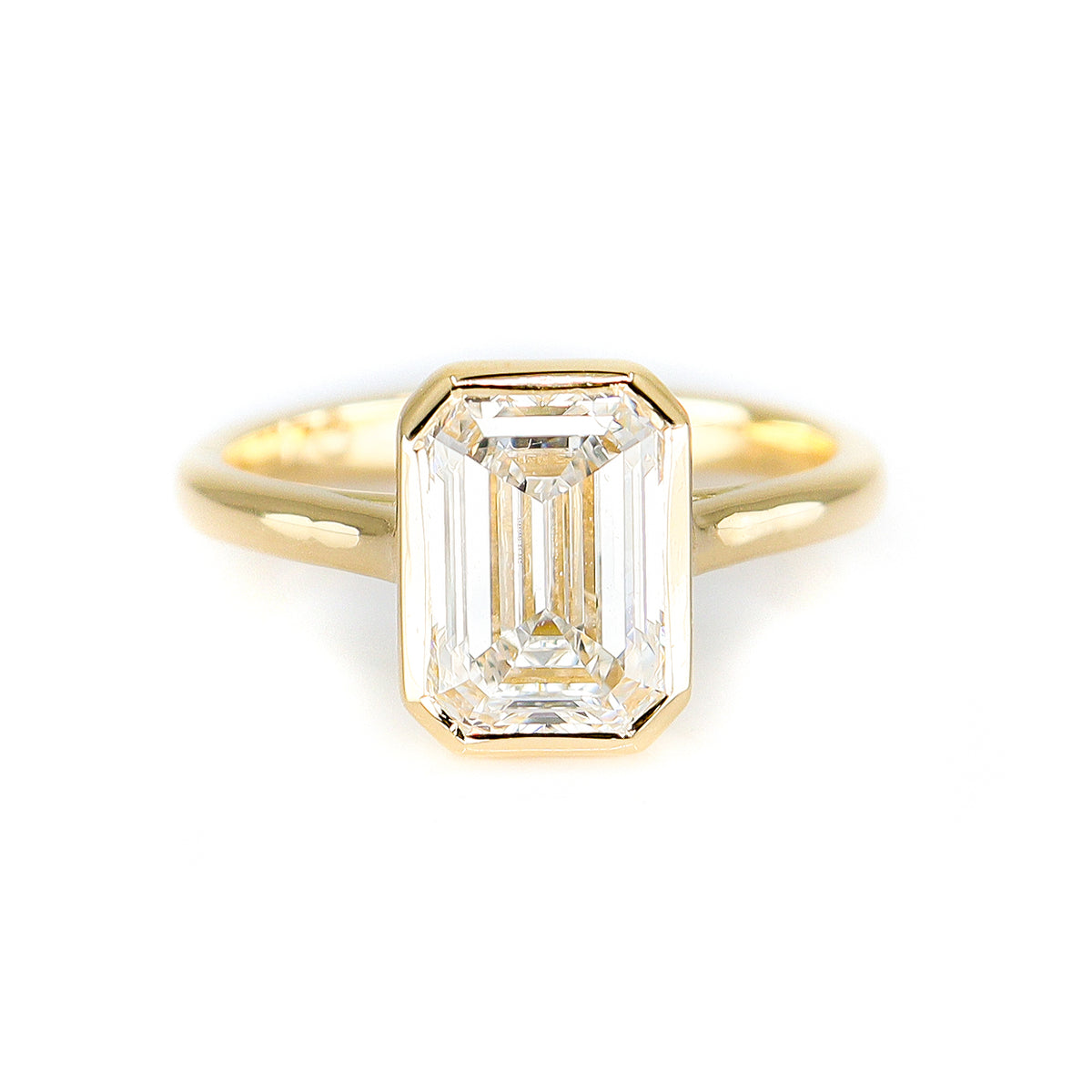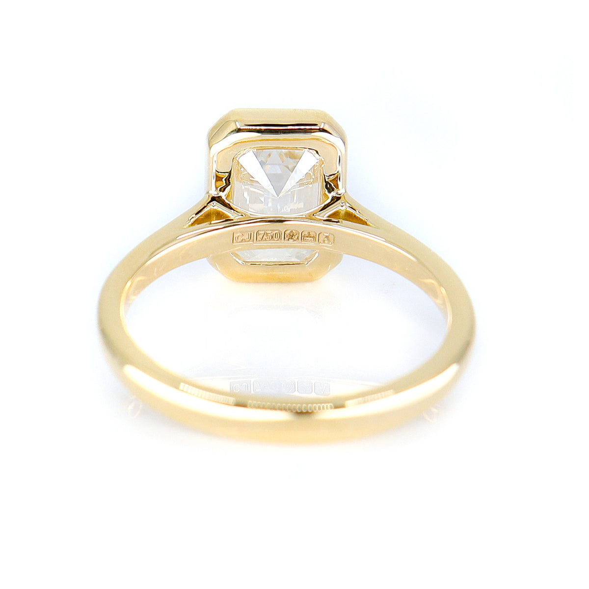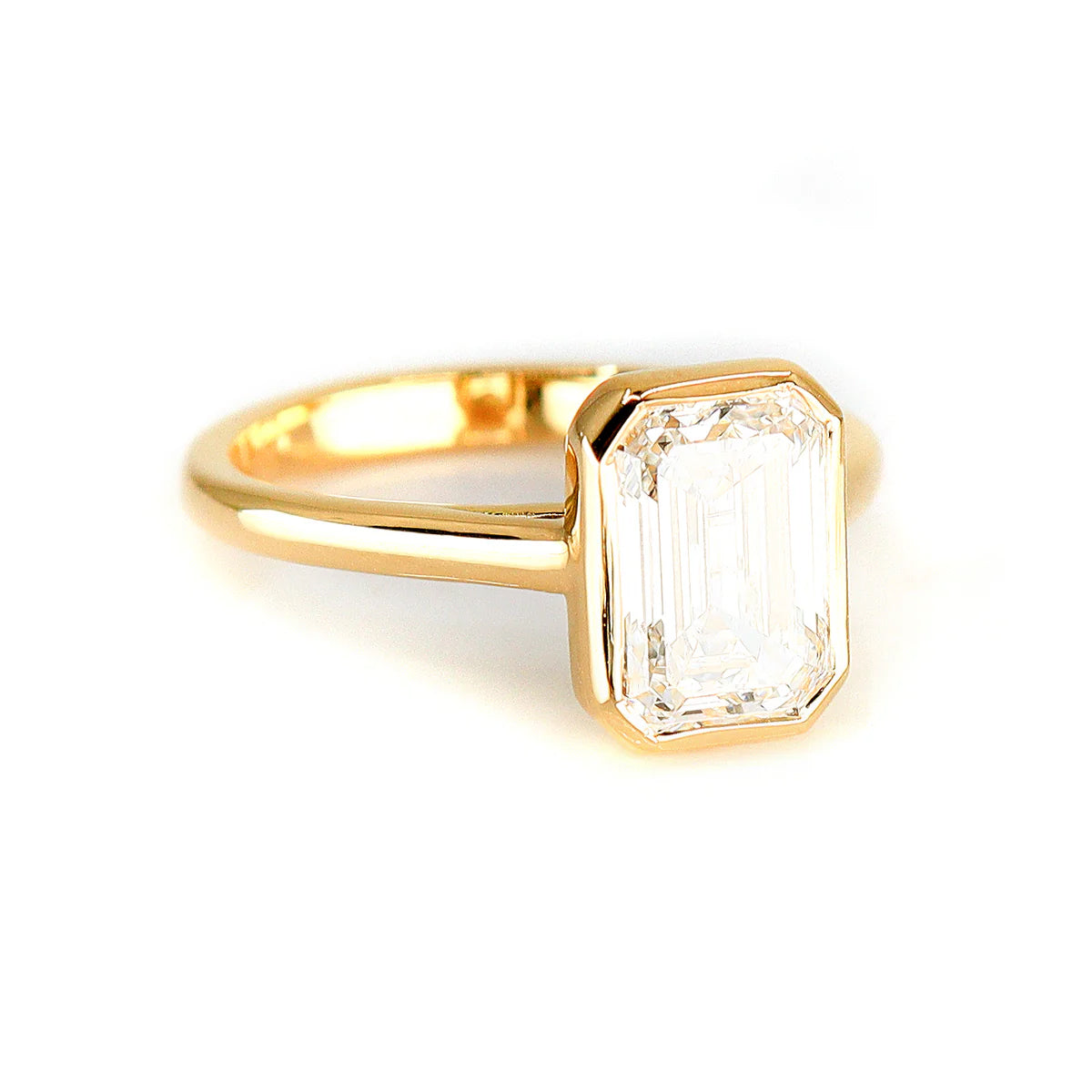 18ct Yellow Gold 2.55ct Lab Grown Certificated Rubset Emerald Cut Diamond Solitaire Ring