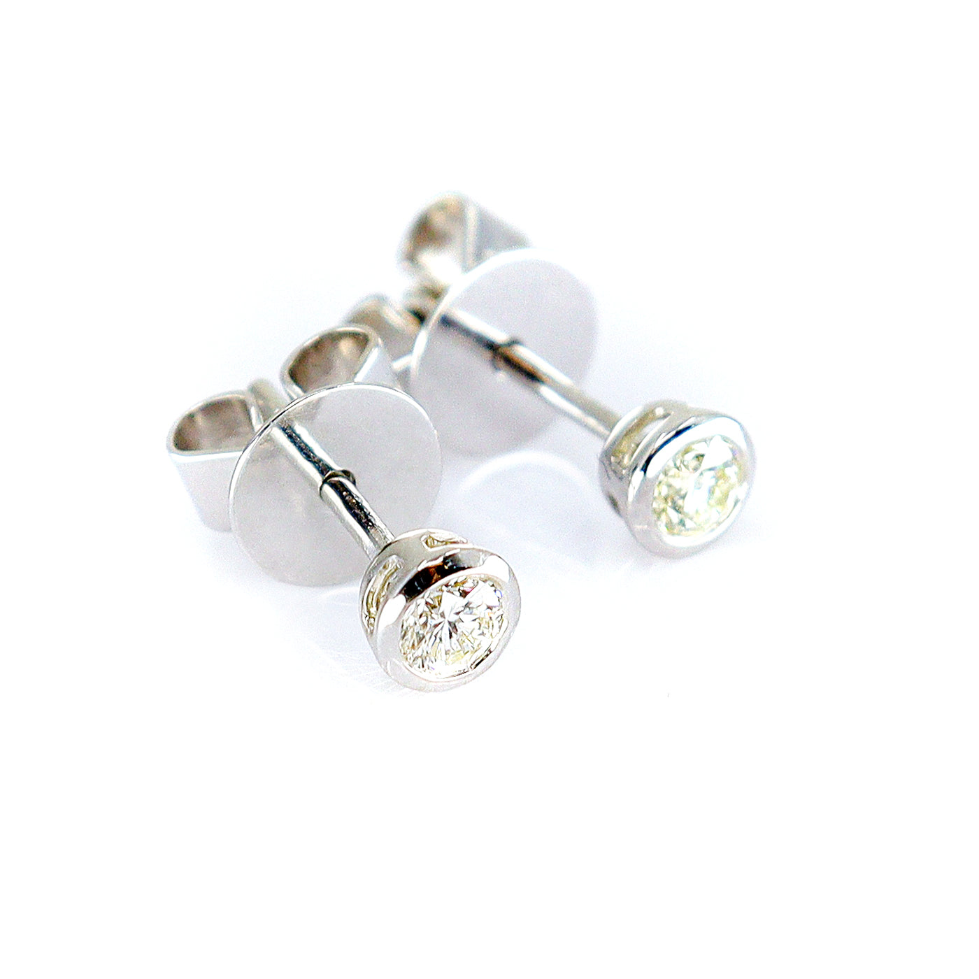 9ct White Gold Diamond 0.25ct Round Brilliant Cut Rubover Stud Earrings