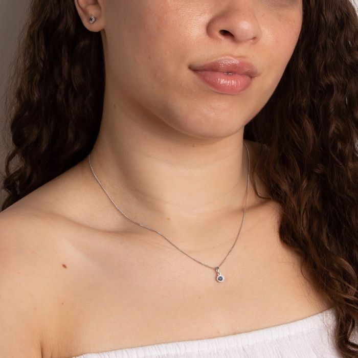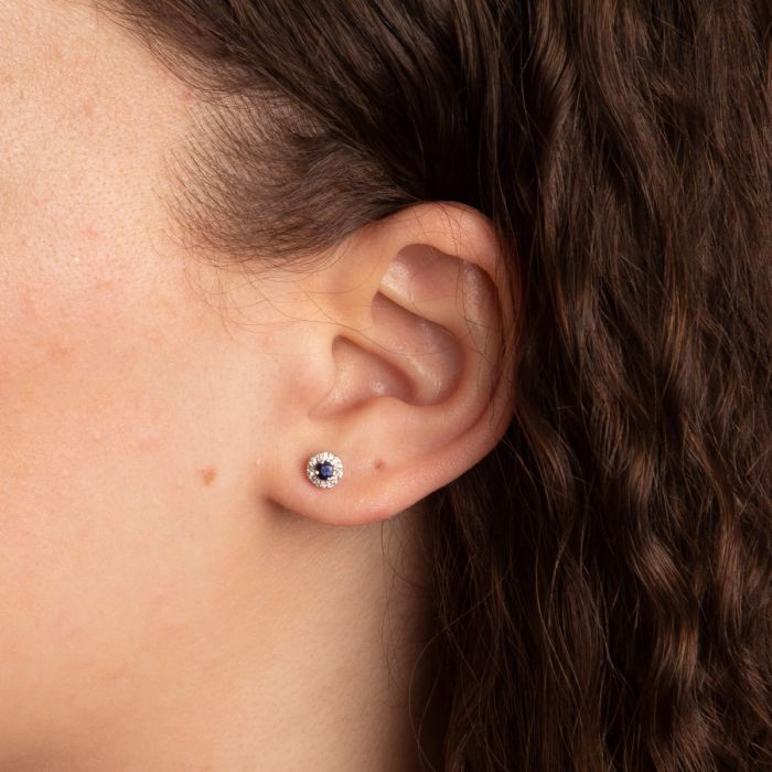 A classic, petite round Sapphire & Diamond Cluster Stud Earrings are crafted in 9ct White Gold and add a perfect touch of sparkle and pop of colour to any outfit.
