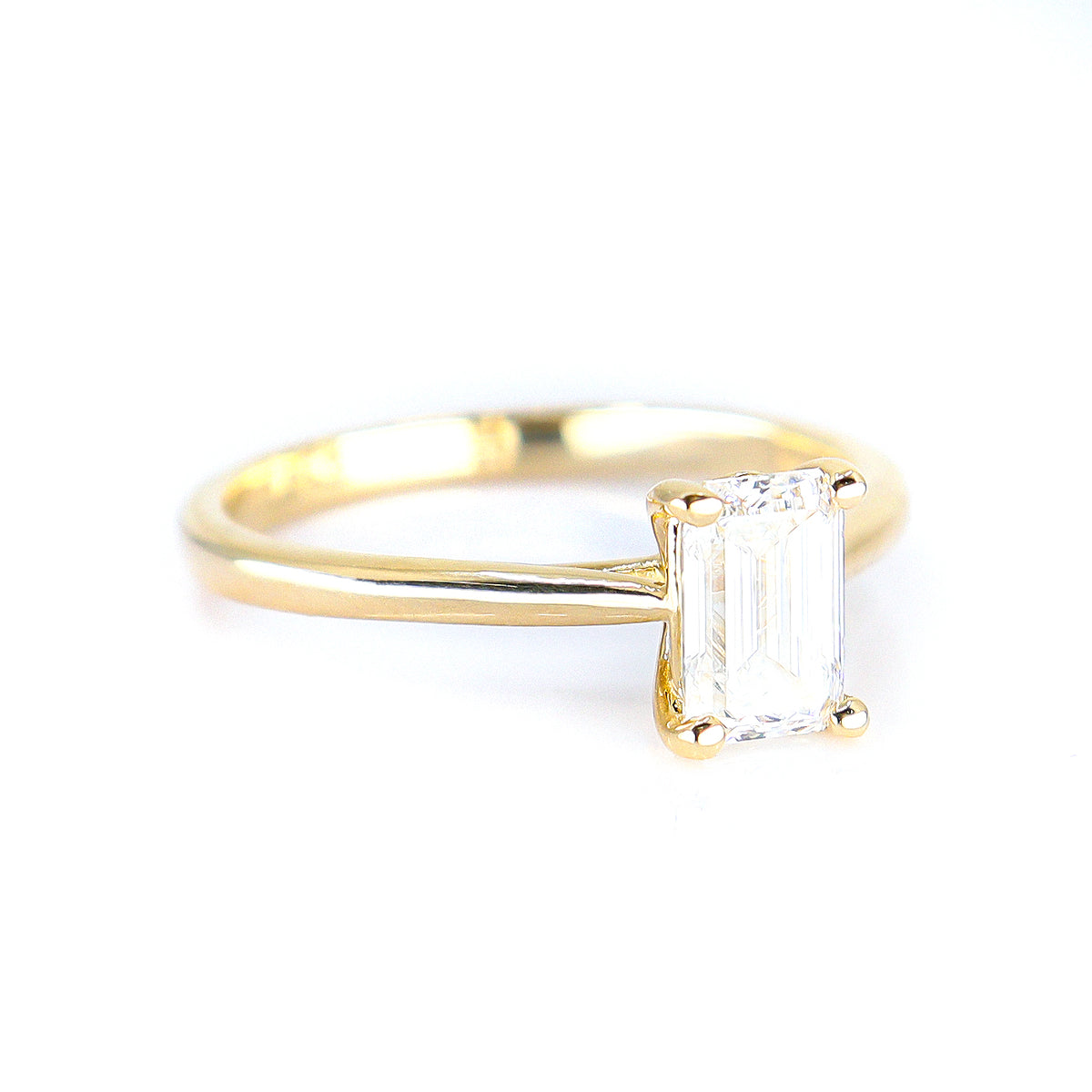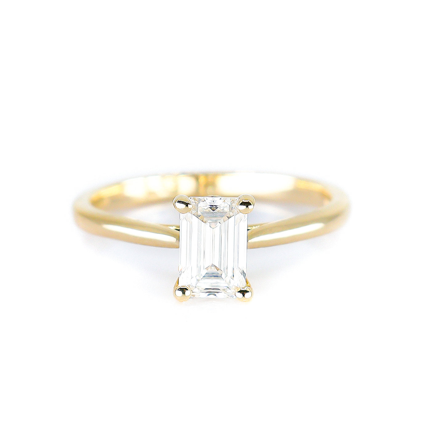 9ct Yellow Gold 1.00ct Lab Grown Certificated Diamond Emerald Cut Solitaire Ring
