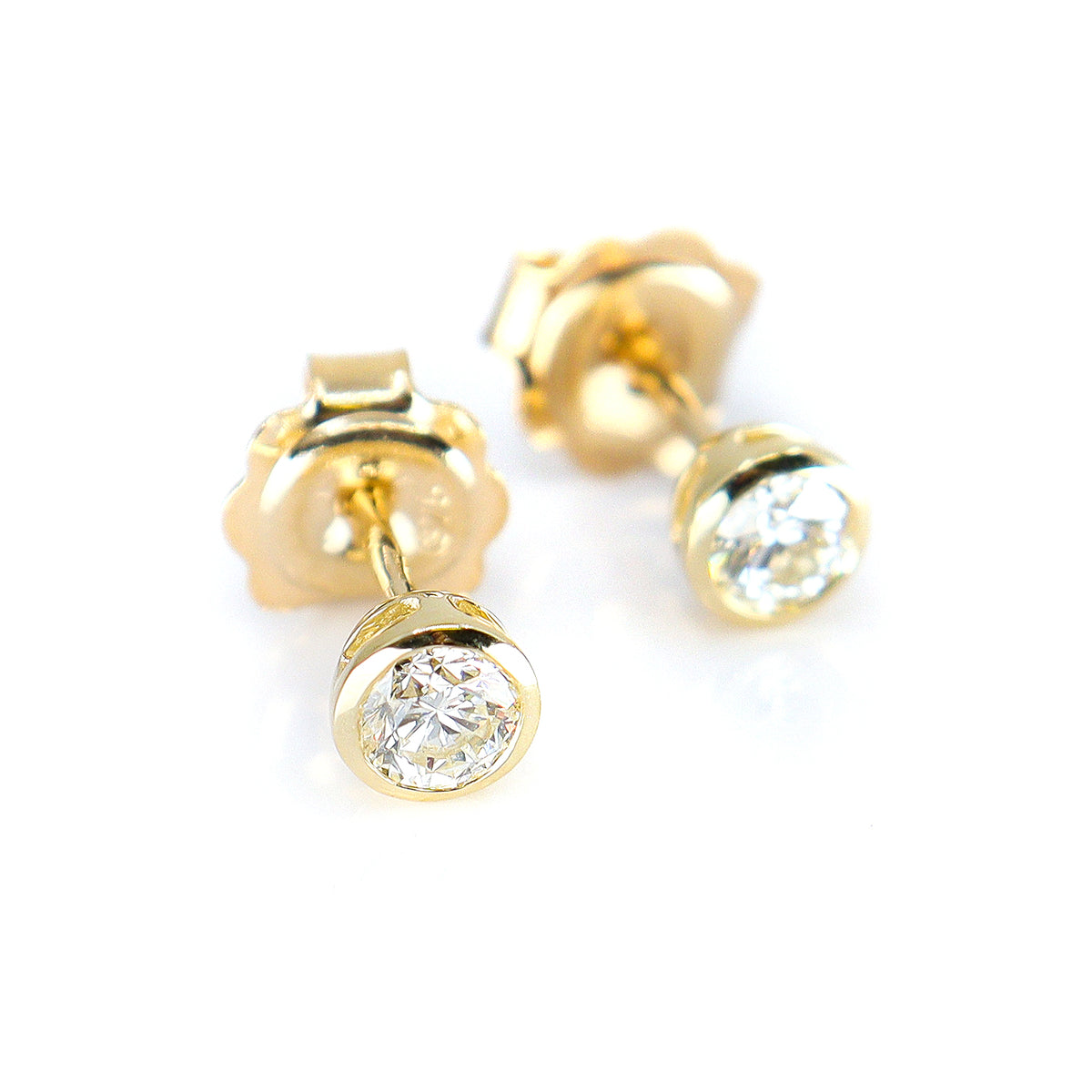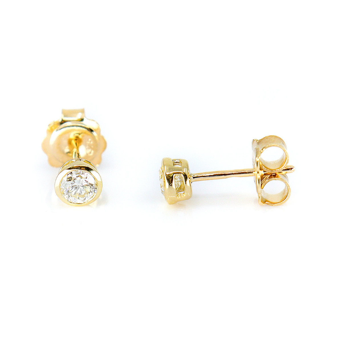 9ct Yellow Gold Diamond 0.50ct Round Brilliant Cut Rubover Stud Earrings