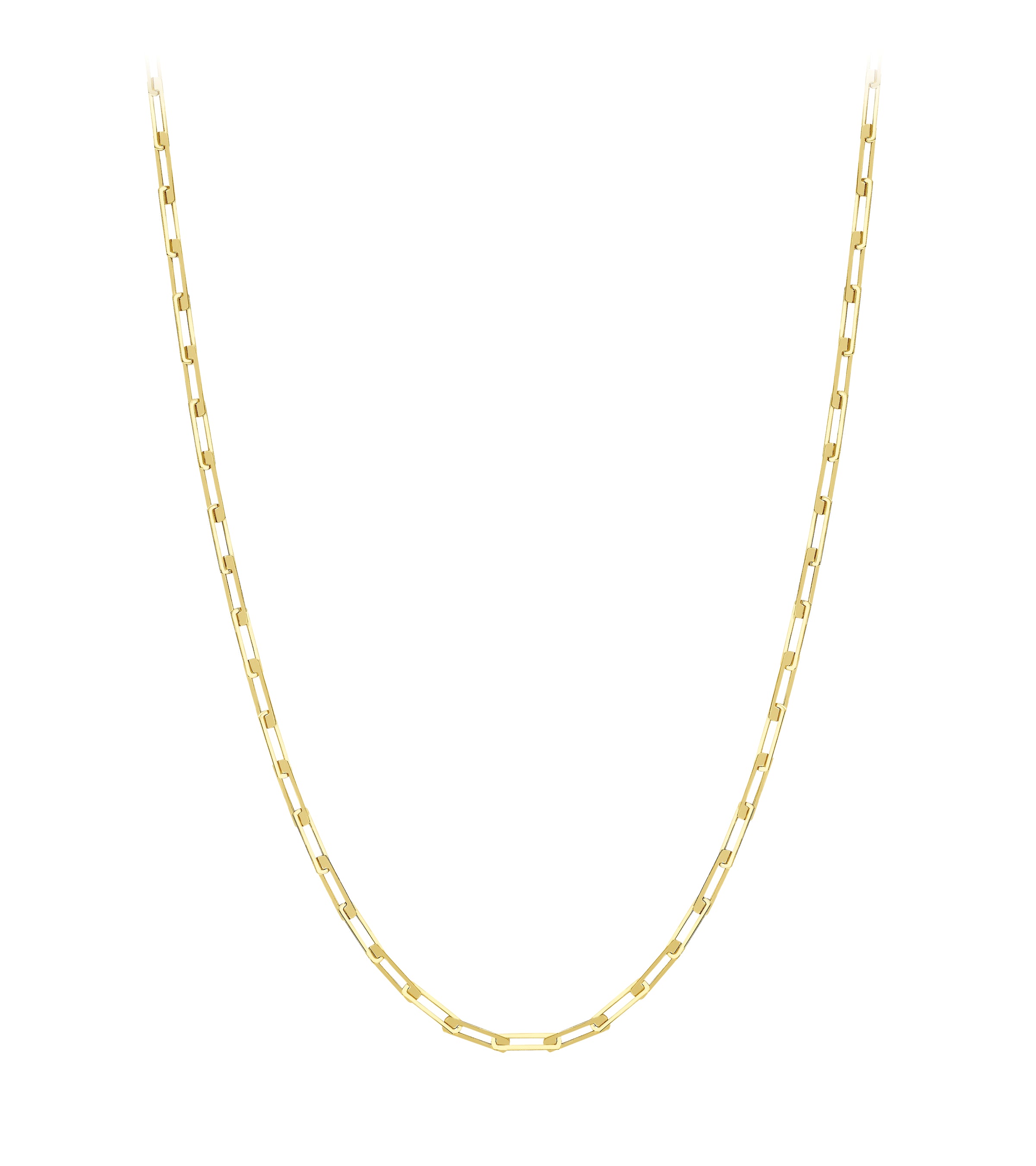 Effortlessly modern, this gold paperclip chain necklace is a timeless essential that adds a touch of understated elegance to any look. Featuring sleek, elongated links with a polished finish, it’s perfect for wearing solo or layering with other pieces for a chic, curated style.
